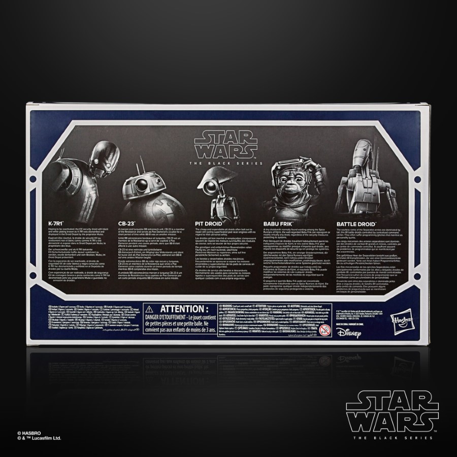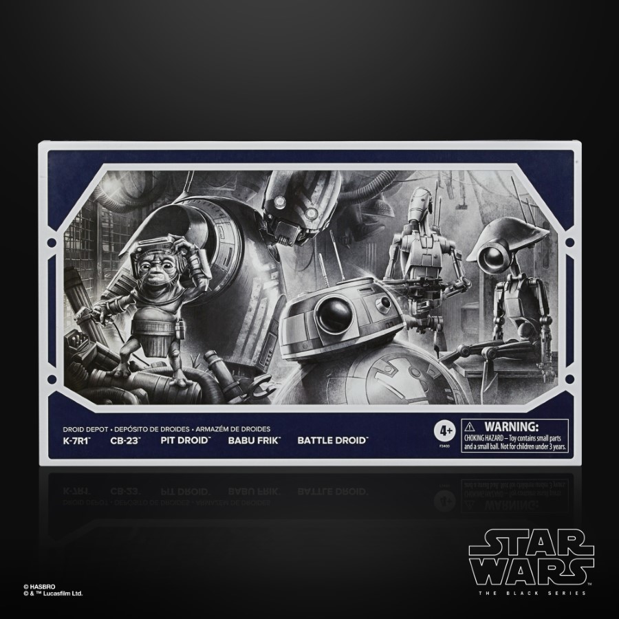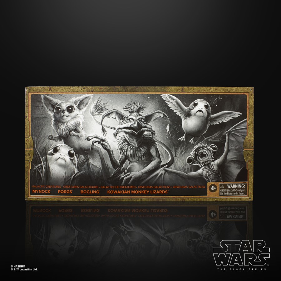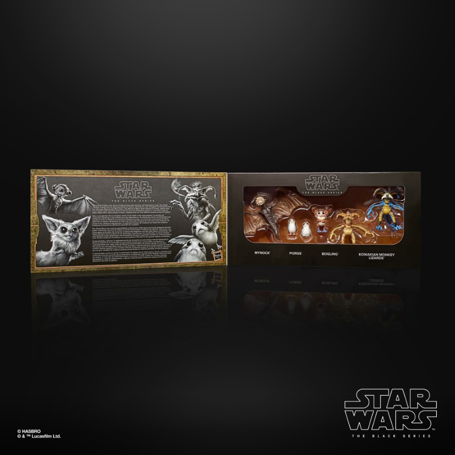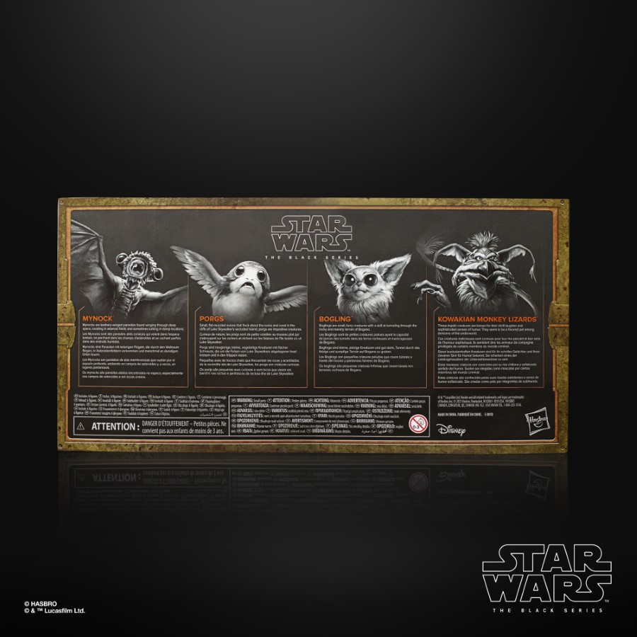 Three new Disney exclusive Galaxy’s Edge multipacks were revealed during PulseCon. The first of these was a First Order pack with a First Order AT-AT Driver an R5 astromech droid, a mouse droid and General Hux (with new head sculpt and deco). A creatures pack was announced that includes a Mynock, two Porgs, a Boglings and two Kowakian Monkey Lizards. Finally a droid pack was shared which includes K-7R1, CB-23, a Pit Droid, a Battle Droid and Babu Frik. Each of these Disney Parks exclusives should be available in park and online.