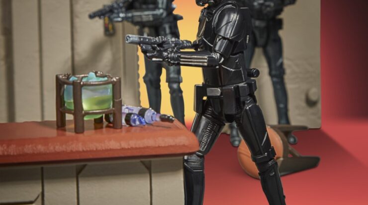 - The Mandalorian Nevarro Cantina playset – relive the excitement of the Season 1 finale with this playset. Two playsets can be combined to make a complete scene. The window can be swapped between it’s normal appearance and a ‘blown out’ battle damage appearance. This playset includes a Death Trooper figure.