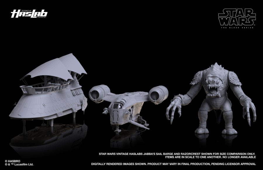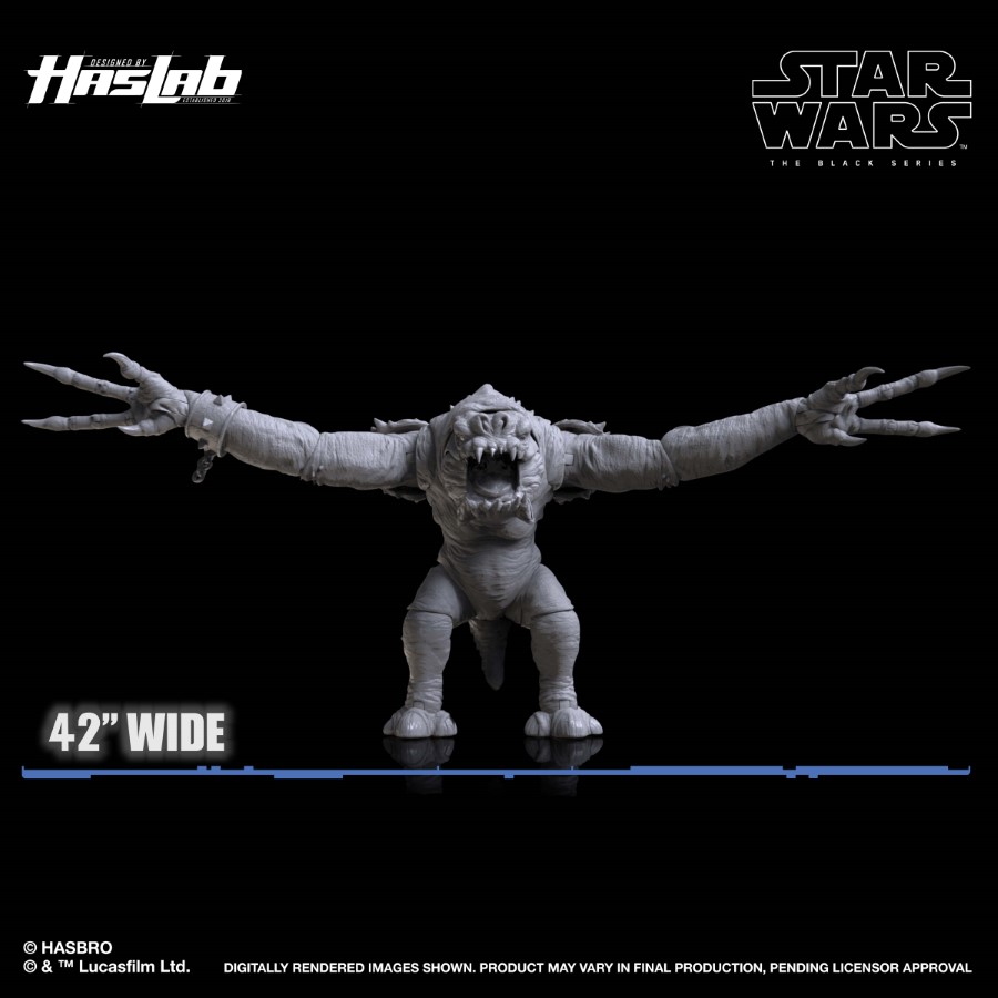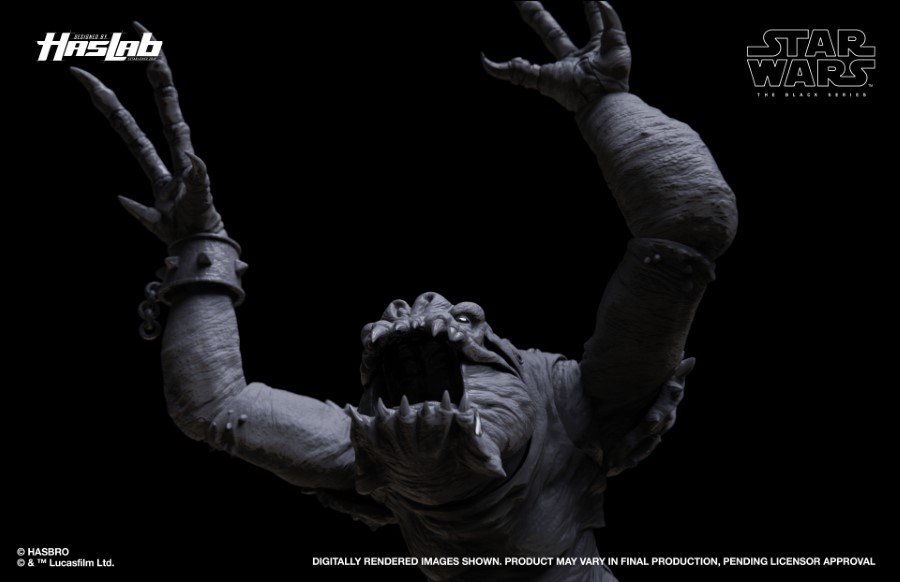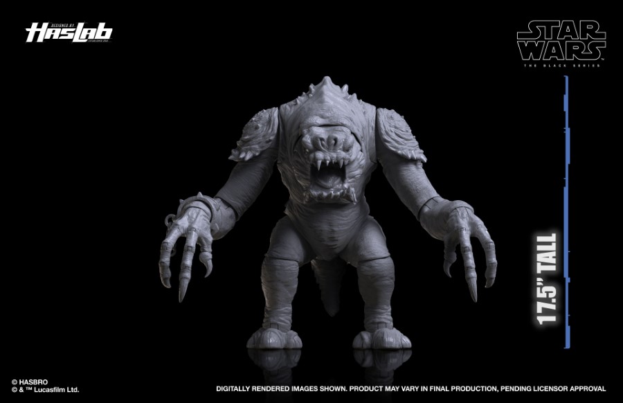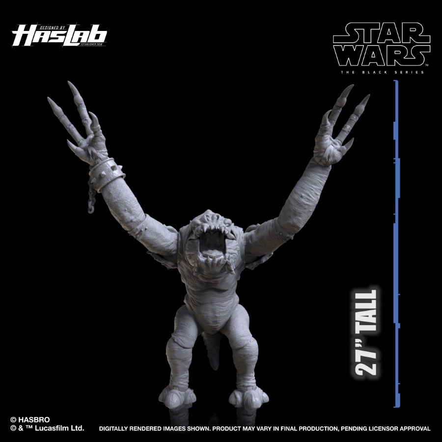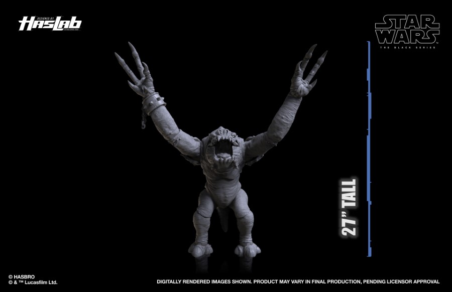 Of course, the big (literally) news of today’s Star Wars reveals was the official start of the HASLAB campaign for the Black Series Rancor. Running from October 22nd (today!) to December 6th, this campaign needs 9,000 backers for the Rancor to go into production. The Rancor has an arm span of 42 inches and stands 17.5inches with 45 points of articulation and hundreds of paint applications. Stretch goals kick in at 11,000 backers. The Rancor is priced at $349.99.
