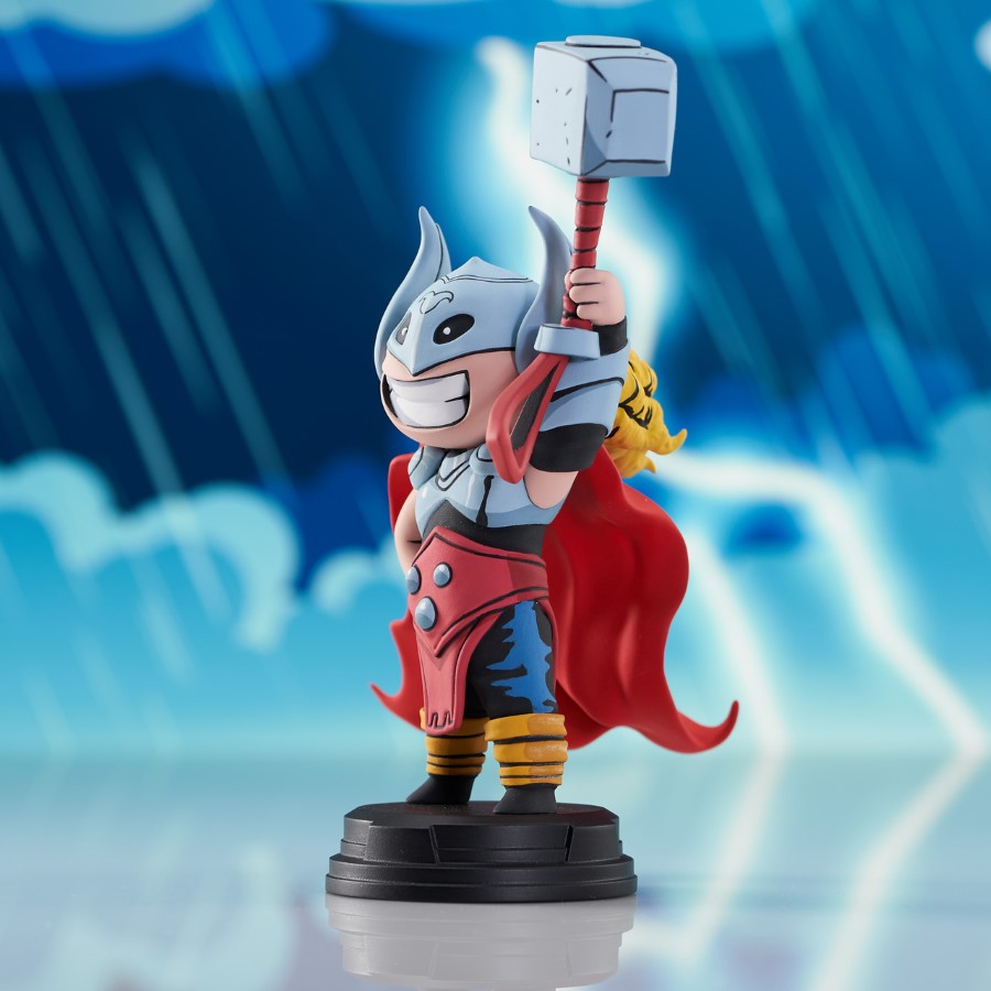 A Gentle Giant Ltd. release! With the world waiting to see how the new Thor will look and what she’ll do in Thor: Love and Thunder, Gentle Giant Ltd. is going back to her childhood for a new animated-style statue! Based on the variant cover artwork of Skottie Young, this approximately 5-inch resin statue of a cute young Jane Foster Thor features detailed sculpting and paint applications and is limited to 3000 pieces. It comes packaged with a certificate of authenticity in a full-color box. Sculpted by Casen Barnard. SRP: $49.99