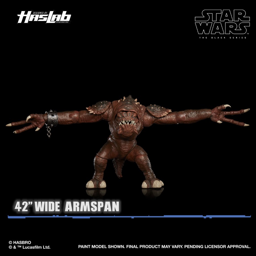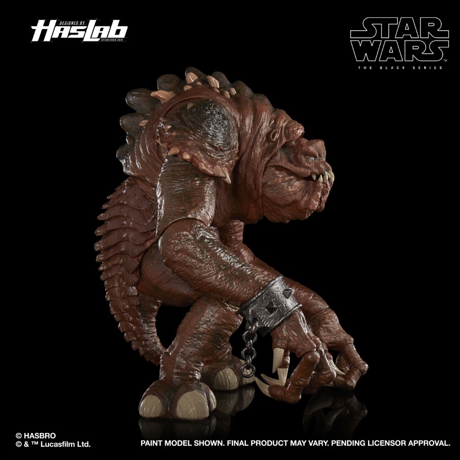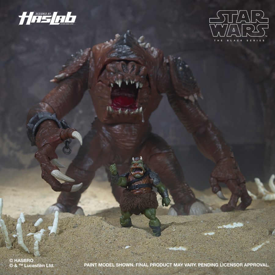 This past Friday, during a Pulse Livesteam the Hasbro Star Wars team promoted the Rancor HASLAB campaign by showing off the fully painted sample of the impressively large toy. With just over 15 days left in the campaign, the team also revealed the 3rd and 4th unlock items.