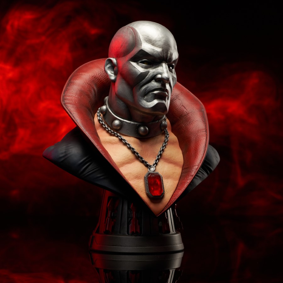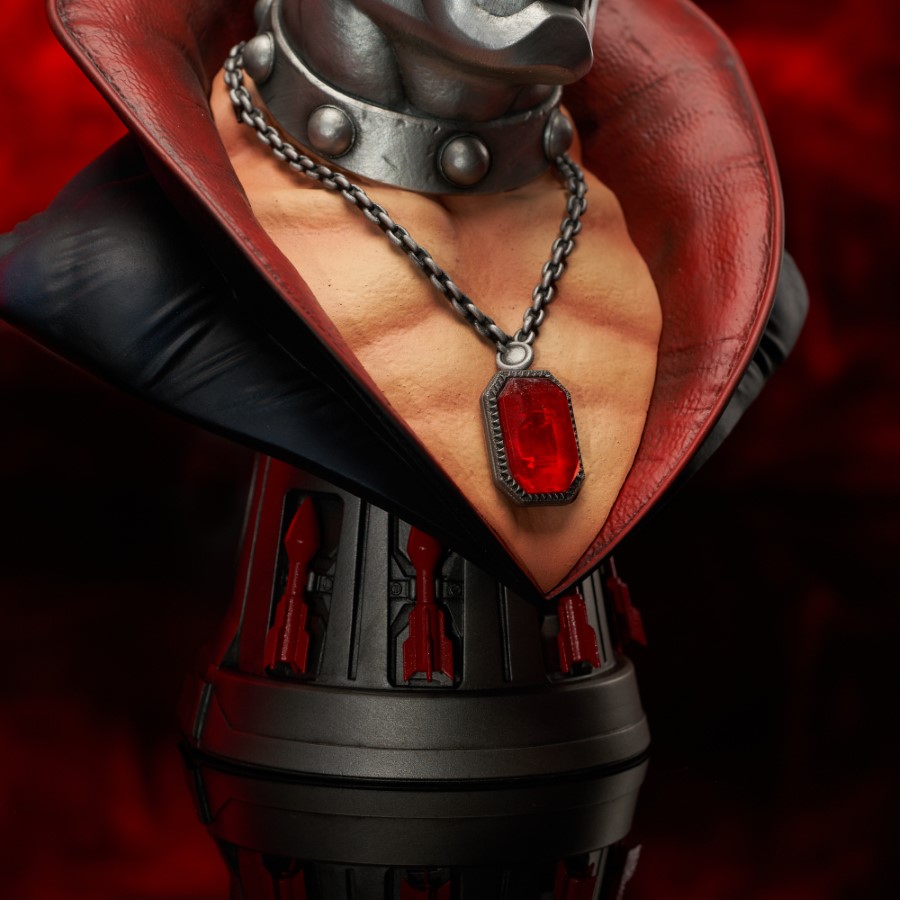 A Diamond Select Toys release! Cobraaaaa! Villainous Scottish arms dealer Destro is now a Legend in 3D, the second entry in the G.I. Joe series! Measuring approximately 10 inches tall, this half-scale bust of the Cobra associate features his awe-inspiring medallion and a pedestal base styled after his famous wrist rockets. Limited to only 1000 pieces, it comes packaged in a full-color box with a numbered certificate of authenticity. Designed by Joe Allard, sculpted by Jorge Santos Souza! SRP: $175.00