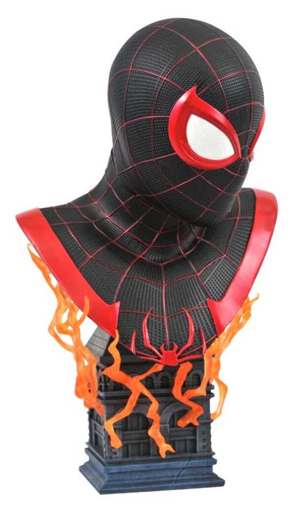 A Diamond Select Toys release! Whether you call him Spider-Man, Spy-D or plain old Miles, Miles Morales is the star of the newest Marvel video game, and now he’s a Legend in 3D! This approximately 10-inch, scale resin bust is based on his appearance in the video game, and features detailed sculpting and paint applications. Limited to only 1,000 pieces, it comes packaged in a full-color box with a certificate of authenticity. Designed by Joe Allard, sculpted by Rocco Tartamella! (Item #FEB211935, SRP: $175.00)