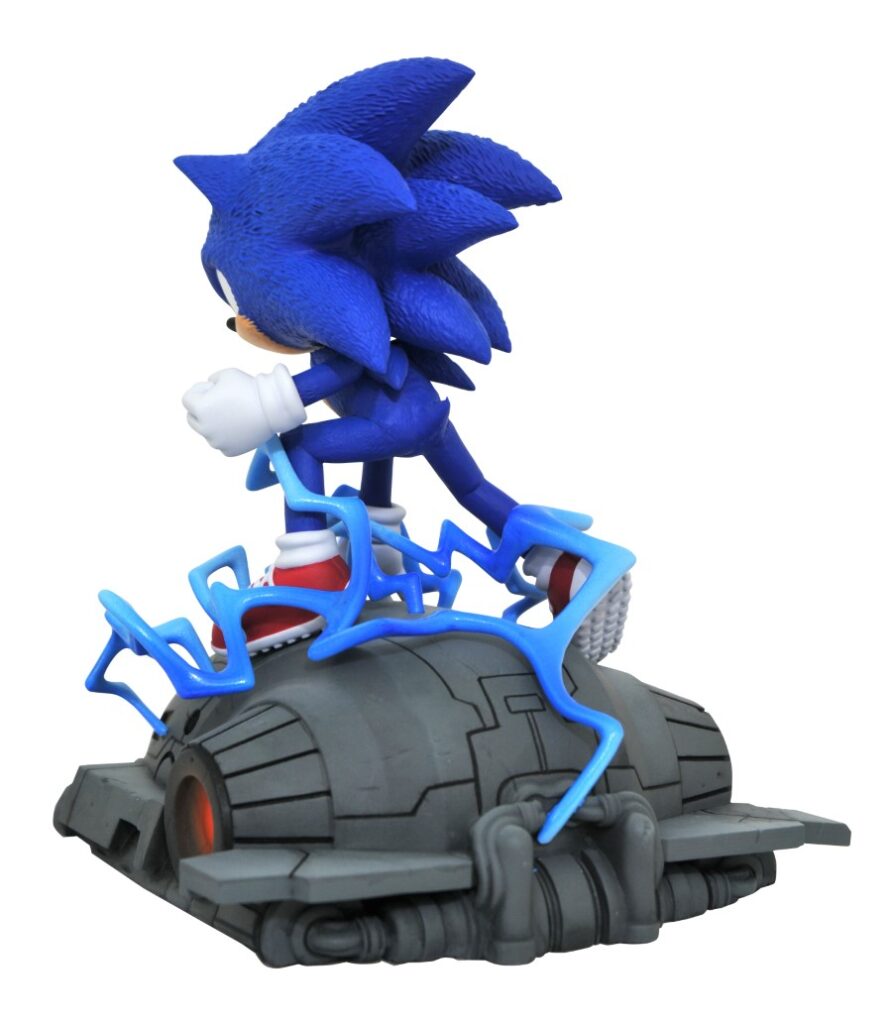 A Diamond Select Toys release! This piece is sure to go fast! Based on the hit movie, this approximately 5-inch sculpture shows Sonic standing on one of Dr. Robotnik’s drones, about to take off in a burst of speed, lightning crackling around him. Sculpted in a 1/6 scale, this statue features detailed sculpting and paint details. Designed by Joe Allard, sculpted by Varner Studios. (Item # JUN212279, SRP: $49.99)