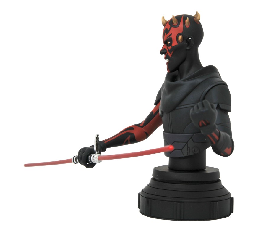 A Diamond Select Toys release! The Sith warrior is now the latest animated bust! Based on his appearance in the Star Wars: Rebels animated series, Darth Maul wields his double-bladed lightsaber in preparation of facing his Jedi opponents. Measuring approximately 6 inches tall, this 1/7 scale mini-bust features detailed sculpting and paint applications. Limited to only 3,000 pieces, it comes packaged with a numbered certificate of authenticity in a full-color window box. Designed by Barry Bradfield, sculpted by Paul Harding! (Item #APR212363, SRP: $59.99)