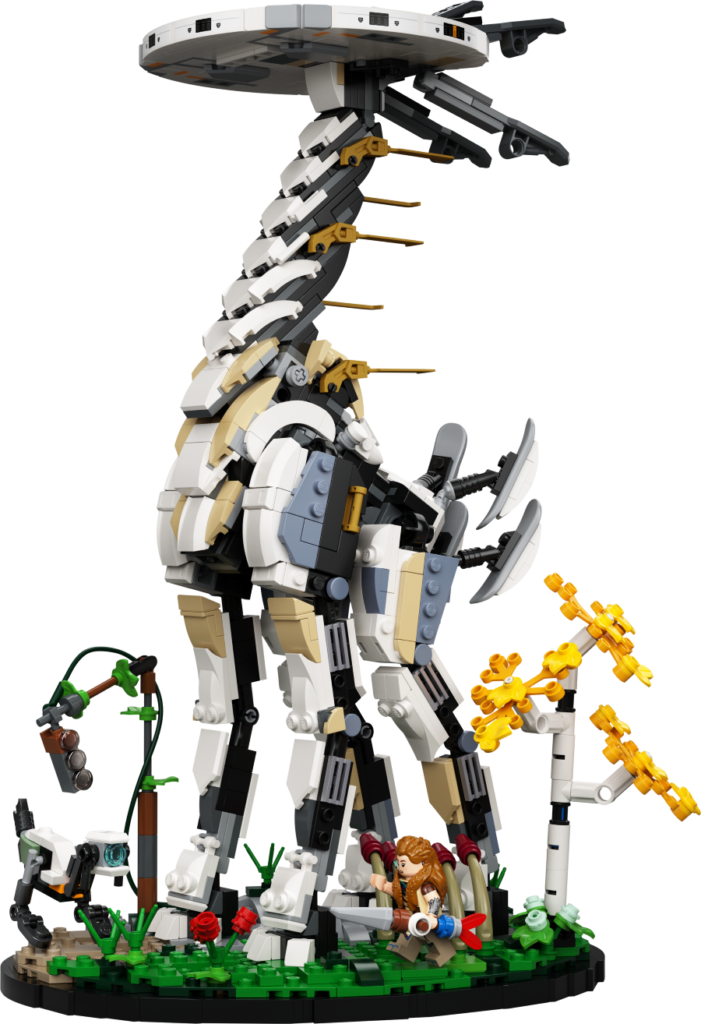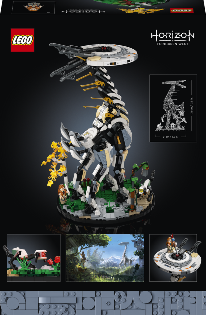 This LEGO set for adults will take builders into an adventure world through Aloy, a fierce machine hunter and the Tallneck, the iconic and awe-inspiring machine Aloy uses to explore nearby areas in her mission to restore order and balance in Horizon Forbidden West. Included in this set is a brand-new headpiece for Aloy, the Watcher machine that comes with a choice of blue, yellow or red eyes and her bow and brick-built spear, alongside the authentic Tallneck machine, with a smooth, disc-shaped head and long slim legs to add striking features within the model. Fans can finish their build by adding the beautiful landscape details like the brick-built birch tree, tall grass and a rusty stoplight, completing the centerpiece for its display moment.
