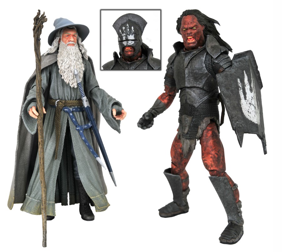 A Diamond Select Toys release! The journey continues, with another series of detailed action figures based on the Lord of the Rings film trilogy! Gandalf the Grey makes his debut in the line, with his staff and his sword Glamdring, and the other figure in the assortment is a customizable Uruk-hai Orc, including two interchangeable heads and multiple weapons. Each features over 16 points of articulation, and each comes packaged in a full-color window box. Designed by Eamon O’Donoghue, sculpted by Gentle Giant Studios! (JUN212274, SRP: $29.99/ea.)