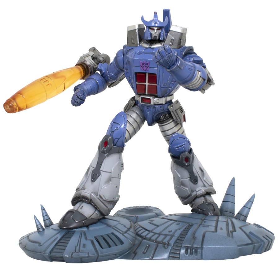 A Diamond Select Toys release! Behold, Galvatron! Megatron’s upgraded form gets an upgrade, in this all-new resin statue based on the 1980s classic Transformers: The Movie! The laser-wielding villain stands approximately 16 inches tall atop a Cybertronian-landscape base, and is limited to only 1000 pieces. It comes packaged in a full-color box with a numbered certificate of authenticity. Designed by Mark Wong, sculpted by Casen Barnard!