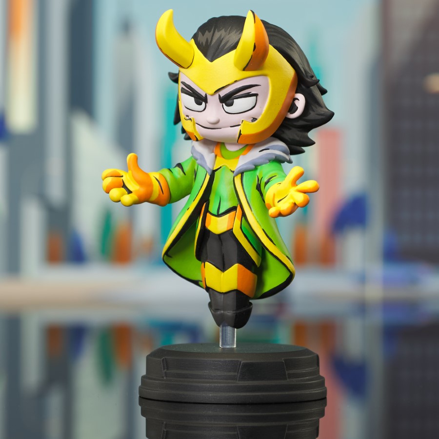 A Gentle Giant Ltd. release! The Trickster God has been de-aged in comics before, but not like this! Captured in the Young Marvel style by artist Skottie Young, this approximately 4-inch resin statue of the smooth-talking Asgardian, Loki, features comic-accurate paint applications and is limited to only 3,000 pieces. It comes packaged with a numbered certificate of authenticity in a full-color box. Sculpted by Casen Barnard!