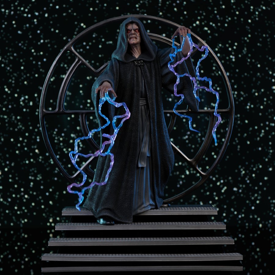 A Gentle Giant Ltd. release! Let the hate flow through you! Emperor Palpatine unleashes the Dark Side of the Force in this all-new Milestones statue! Standing approximately 12 inches tall atop a throne room base, this 1/6 Scale Statue features interchangeable hands, with and without force lightning. Limited to only 2000 pieces, it comes packaged with a numbered certificate of authenticity in a full-color box.