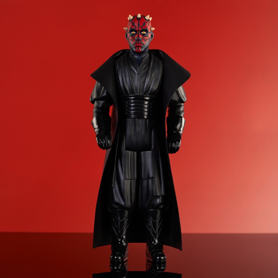 A Gentle Giant Ltd. release! At last, he will have his revenge! Evil Sith warrior Darth Maul returns, top and bottom, as the latest 12” Jumbo figure in the Star Wars line! Sculpted in a vintage style with five points of articulation, this 1/6 scale figure includes a double-bladed lightsaber and a removable cape, and comes packaged on a full-color blister card – resealable so you can play and then display!