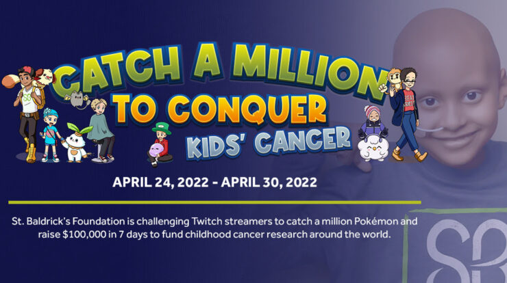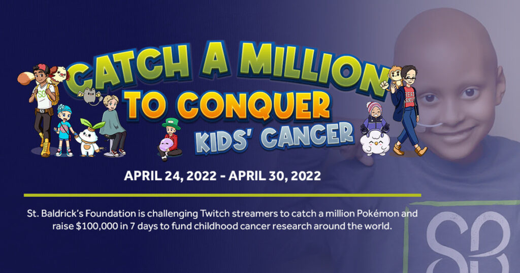 Catch a Million to Conquer Kids’ Cancer is a 7-day marathon in which Twitch streamers are challenged to catch a million Pokémon to fundraise for St. Baldrick’s Foundation. St. Baldrick’s is committed to funding the most promising childhood cancer research projects, regardless of location. The goal of $100,000 will fund research worldwide. Every streamer with an appreciation for Pokémon is welcome to participate in the Catch a Million event.