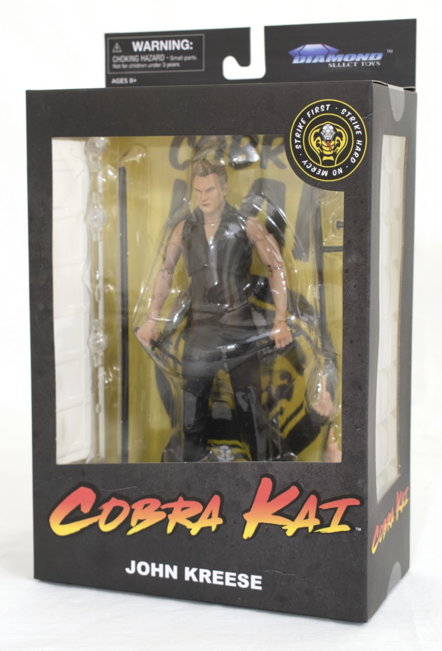 A Diamond Select Toys release! Sweep the leg! A follow-up to the classic film The Karate Kid, the hit Emmy Award-nominated Netflix TV series Cobra Kai is now a series of deluxe action figures from DST! Each 7-inch figure – Johnny Lawrence, Danny LaRusso and John Kreese – features over 16 points of articulation, plus interchangeable hands for a variety of martial arts moves. Packaged in a full-color window box. Sculpted by Chris Dahlberg and Rocco Tartamella. (Item #AUG212419, SRP: $24.99)