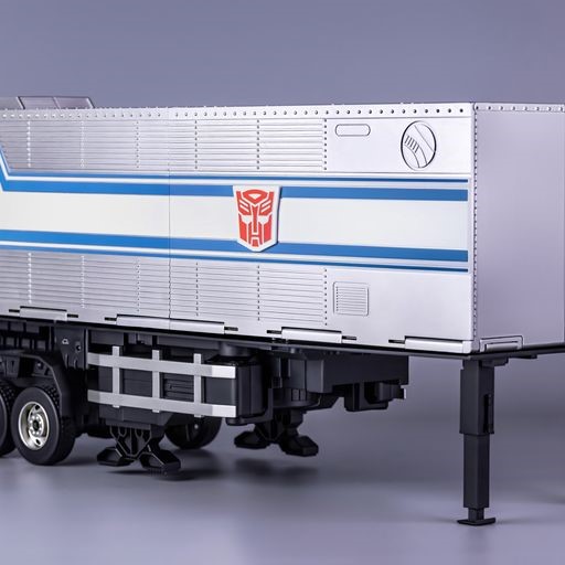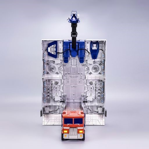 A simple voice command opens the Trailer’s rear swing doors exposing the automatic lift gate, which Roller can drive up and down, and Optimus Prime can seamlessly tow the Trailer with the integrated fifth wheel coupling that easily attaches while operating in truck mode for a quick and realistic connection. Various battle modes stage Optimus Prime and Trailer in full combat and defensive positions and the Trailer can open while Optimus Prime tows via truck mode, exposing the sentry weapons to fire on the Decepticons during the chase.