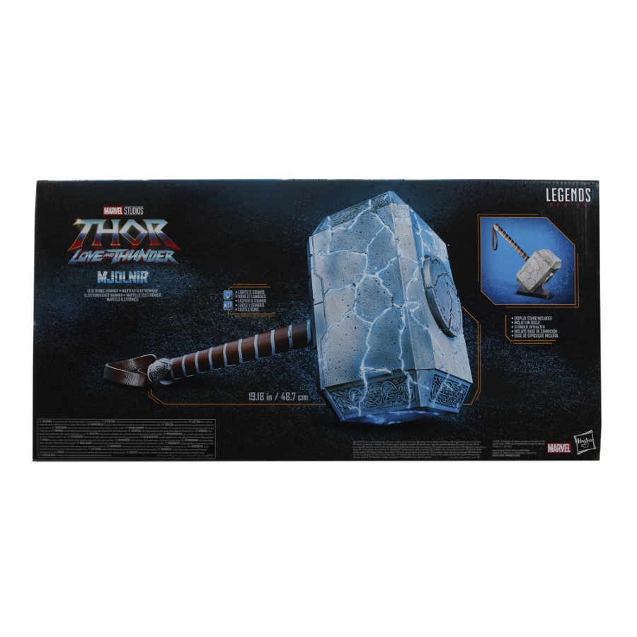 The 1:1 scale Marvel Legends Role Play Mjolnir also gets a refresh for ‘Thor: Love and Thunder’. Mjolnir now features crack lines through the hammer head as shown in the film. With press of a button on the handle, the hammerhead lights up and movie-inspired thunder sounds play. Mjolnir will also be available to pre-order on April 26th.