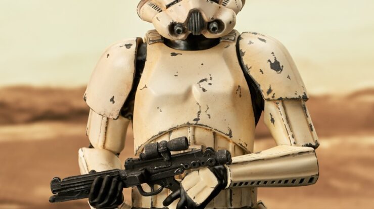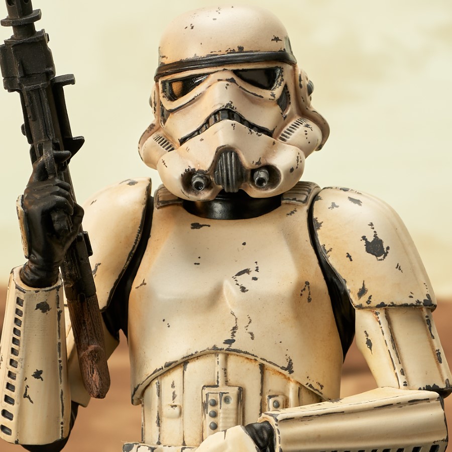 A Gentle Giant Ltd. release! Once, the Imperial Stormtrooper was a proud breed, serving the Empire faithfully and relentlessly. But now that the Empire has fallen, so has the Stormtrooper, often selling their services to the highest bidder. This 1/6 scale, approximately 6-inch mini-bust of a battle-scarred Remnant Stormtrooper includes interchangeable arms holding an E-11 blaster and a DLT-19 heavy blaster rifle. It is limited to only 1000 pieces, and comes packaged in a full-color box with a numbered certificate of authenticity. ($120)