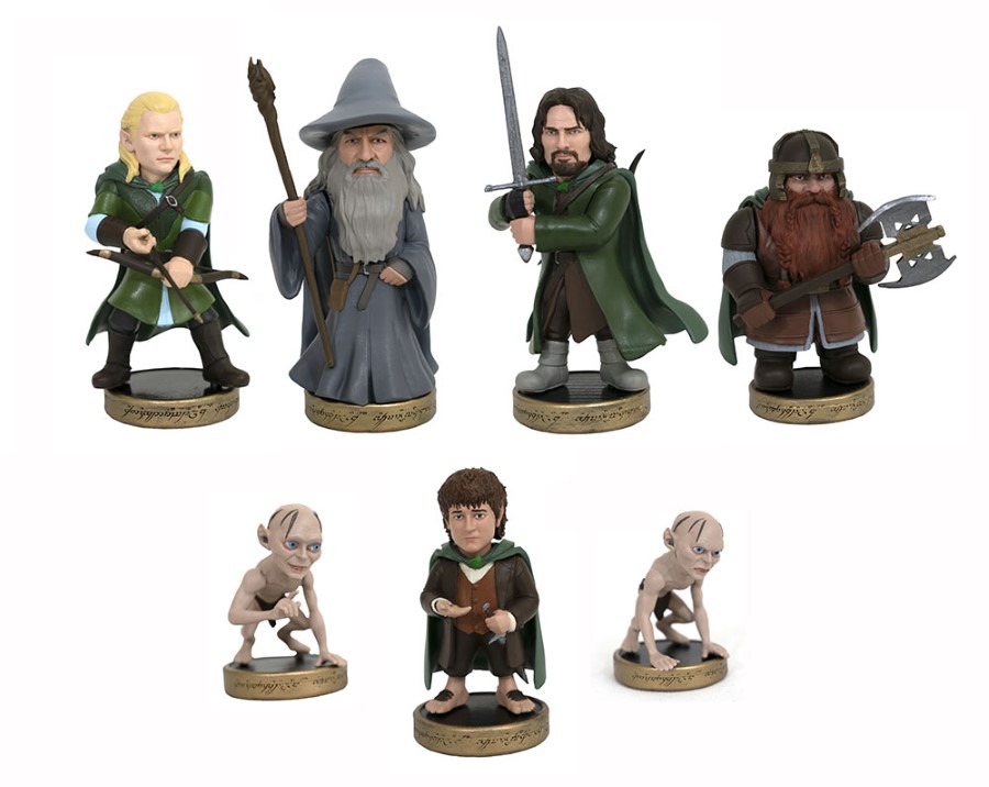 A Diamond Select Toys release! Form the Fellowship! The members of the Fellowship of the Ring come together in the first-ever series of Lord of the Rings D-Formz! Packaged in blind boxes, and arranged in a counter display, these 12 figures include two each of Aragorn, Gandalf, Legolas, Gimli, and Frodo, plus one each of Gollum and Smeagol! Each figure stands 2-3 inches tall, and stands on a disc base. Designed by Barry Bradfield, sculpted by Rocco Tartamella!