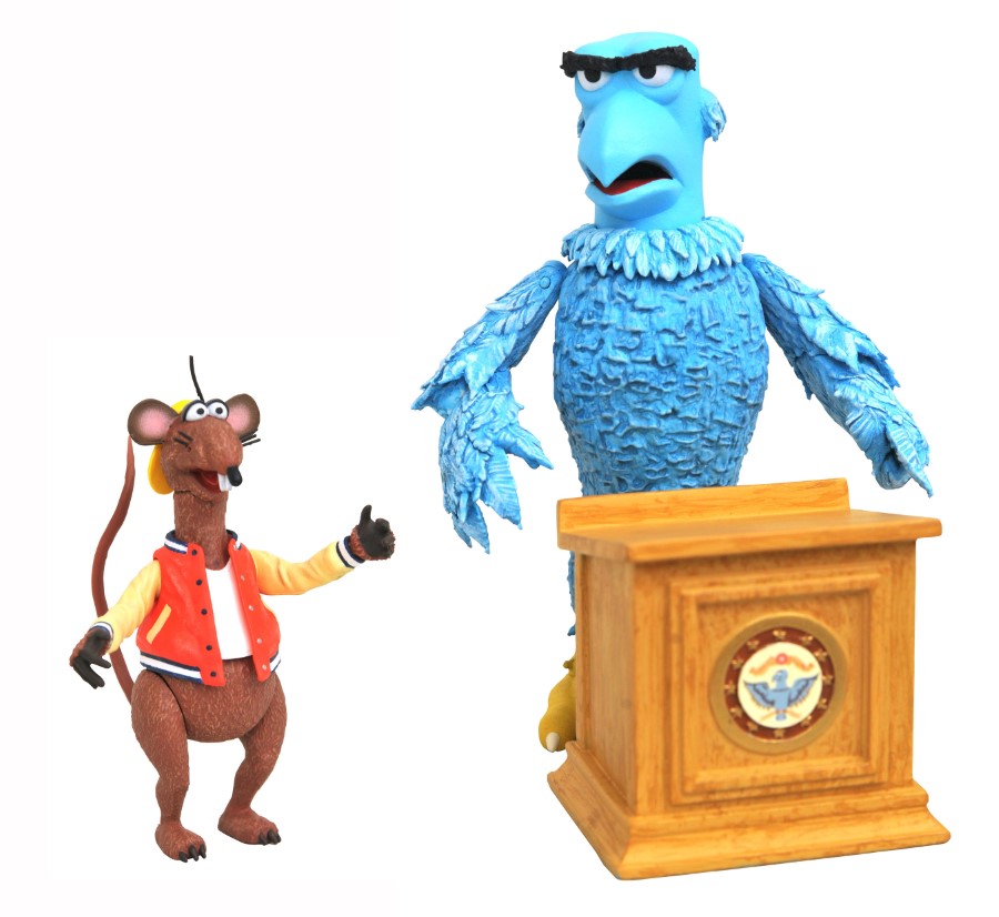 A Diamond Select Toys release! It’s the American Way! The next Muppets action figure has arrived, and it’s Sam the (American) Eagle! Plus, as a bonus you get Rizzo the Rat! These 7-inch scale action figures measure 5 inches and 3 inches, respectively, and each includes multiple points of articulation. Accessories include a podium. Together they come packaged in a full-color window box. Sculpted by Gentle Giant Studios. (Item #AUG212424, SRP: $29.99)