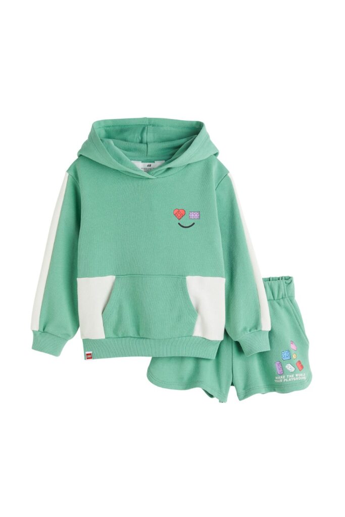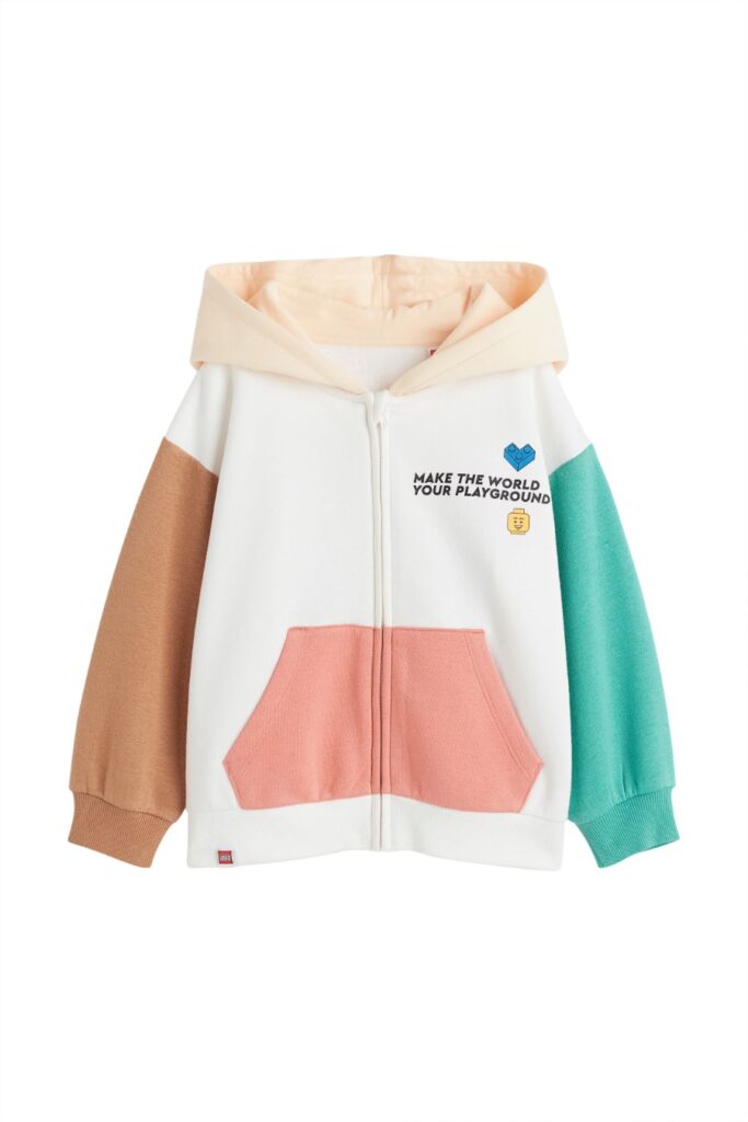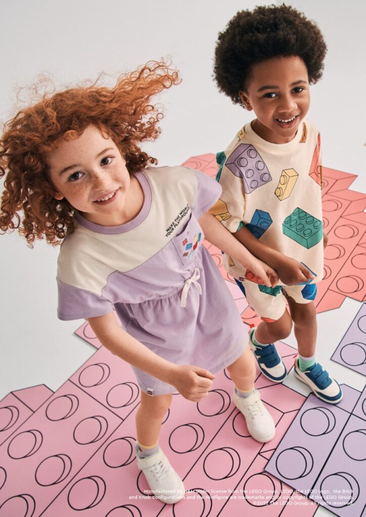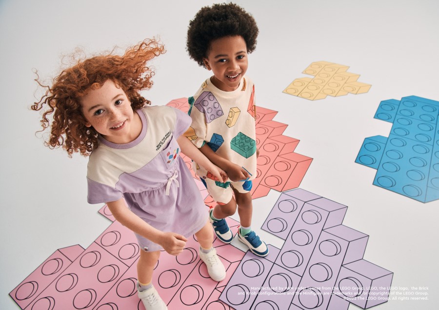 The collection is designed to celebrate kids’ boundless imaginations and was inspired by the creativity of LEGO play in the brand’s 90th year. The kidswear range includes hoodies, t-shirts, dresses, skirts, shorts, matching sets, and accessories in off-white, muted green, peach, purple and of course, the vibrant colours of the iconic LEGO® bricks that inspired the designs.