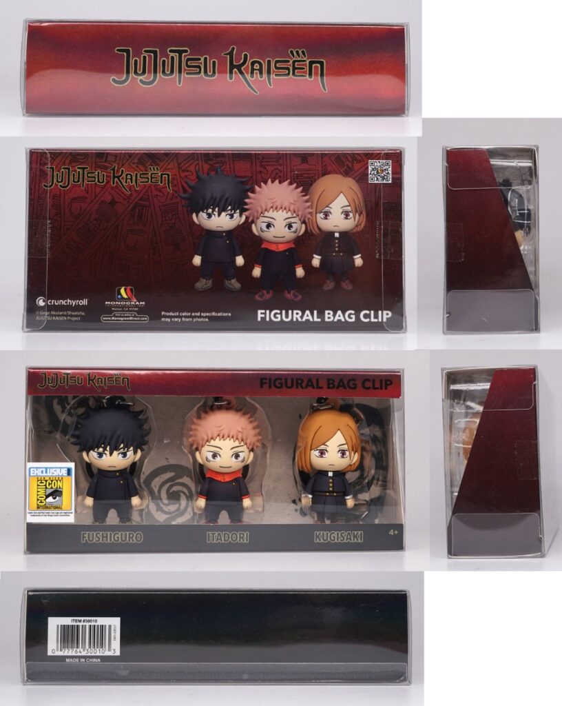 - The set includes Yuji Itadori, Megumi Fushiguro, and Nobara Kugisaka all in their Tokyo Jujutsu High uniforms.