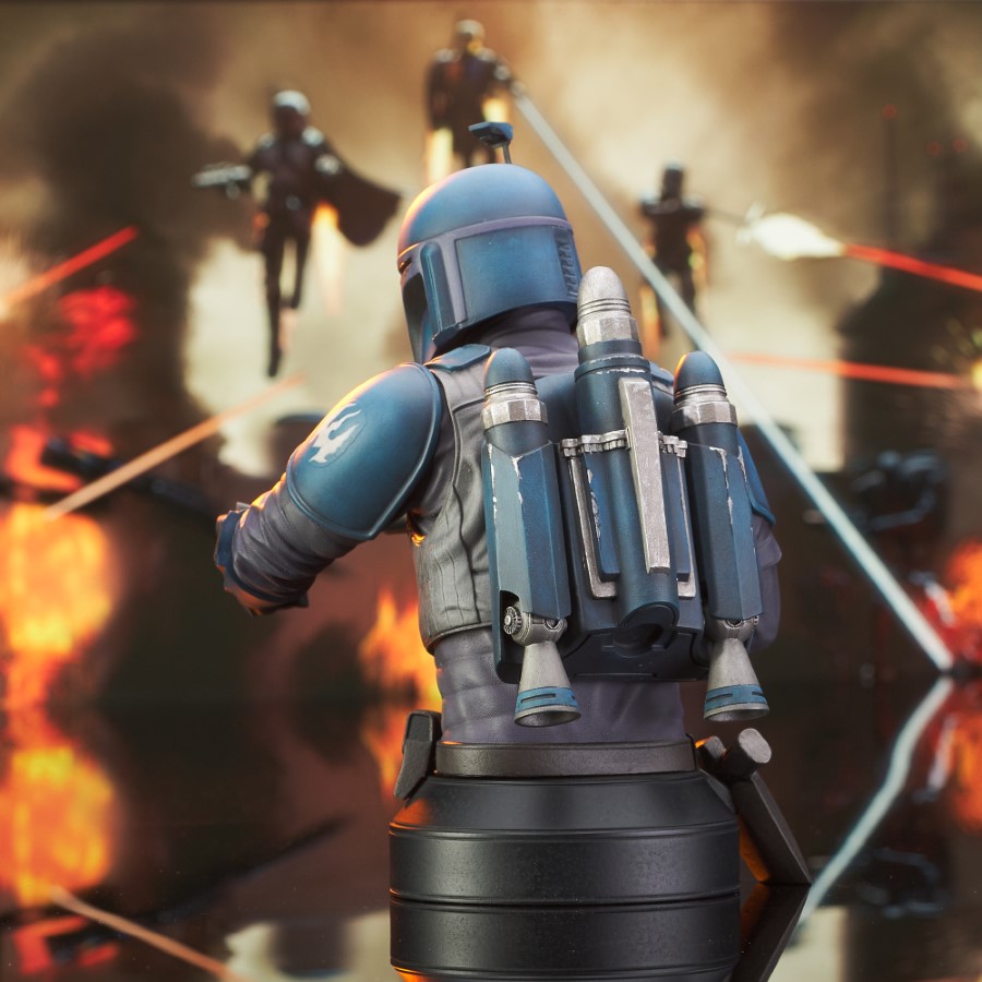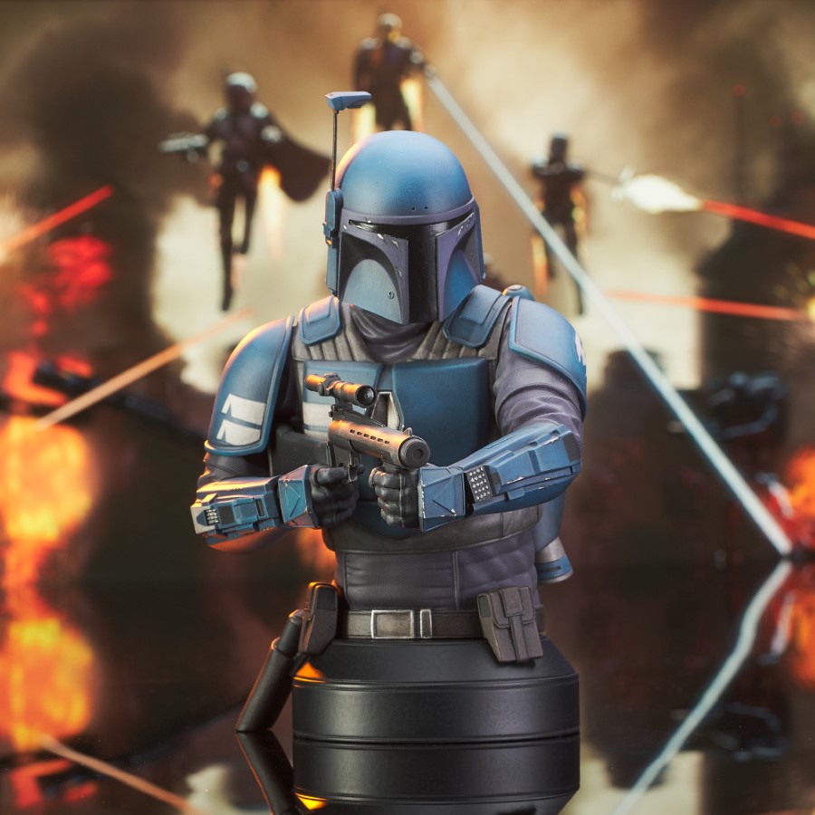 A Gentle Giant Ltd. release! The Mandalorian leader is captured in her animated look in this all-new 1/7 scale resin bust. Depicting Bo-Katan Kryze with her dual pistols in hand, this bust also comes with both helmeted and unhelmeted heads, for two dynamic display options. Measuring approximately 6 inches tall, this bust is limited to 3,000 pieces, and comes packaged in a full-color window box. Designed by Barry Bradfield, sculpted by Paul Harding! (OCT212180, SRP: $99.99)
