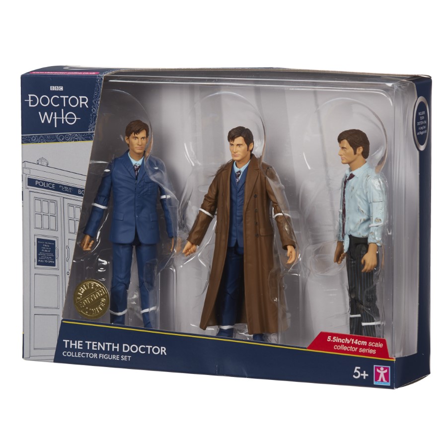 In this set, we have three all-new variants of the Tenth Doctor. The first figure depicted is the Tenth