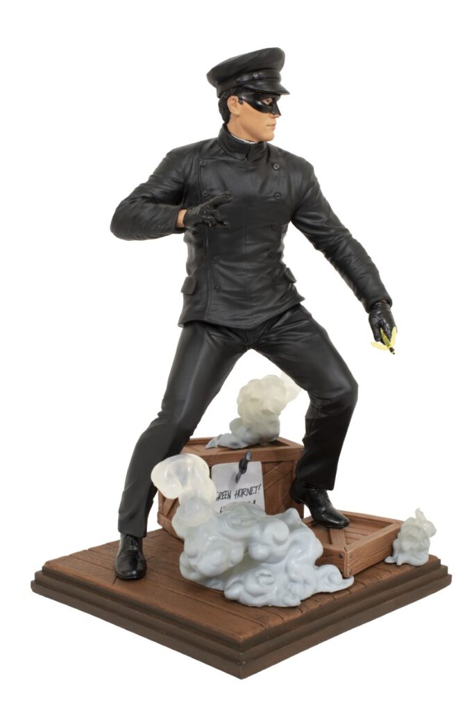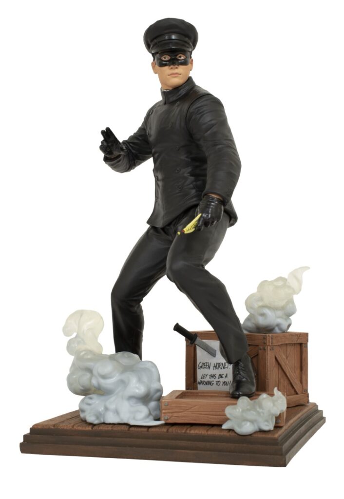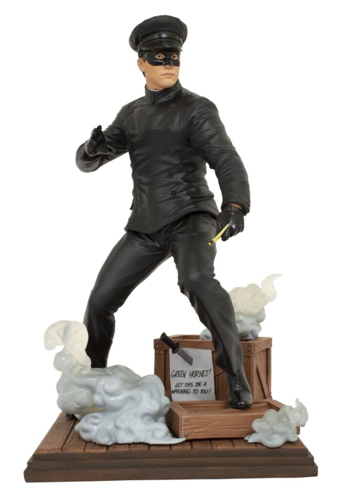 A Diamond Select Toys release! Criminals beware! Kato is here to stop your evil deeds, and no threat will stop him! With one foot atop a smoking create and a Green Hornet dart in hand, Kato stands over a knife stuck in the crate, holding a note that says “Green Hornet! Let this be a warning to you!” Featuring the official likeness of actor Bruce Lee as well as detailed sculpting and paint work, this 10-inch sculpture is made of high-quality PVC and comes packaged in a full-color window box. Designed by Nelson X. Asencio, sculpted by Rocco Tartamella! SRP: $59.99