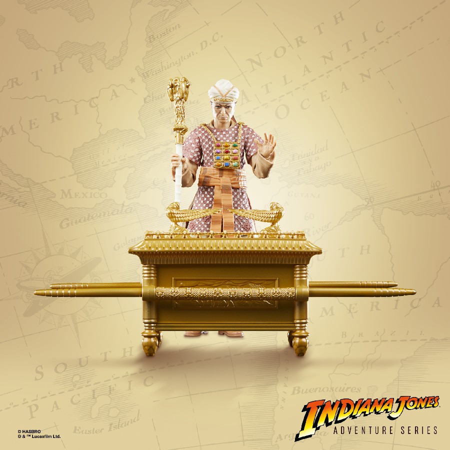 The Adventure Series’ first wave includes Indiana Jones, Major Arnold Toht, Marion Ravenwood, Sallah and Rene Belloq (Ceremonial). Each figure of the wave includes a peice of the Ark of the Covenant – and by collecting all five, you can build your own Ark.