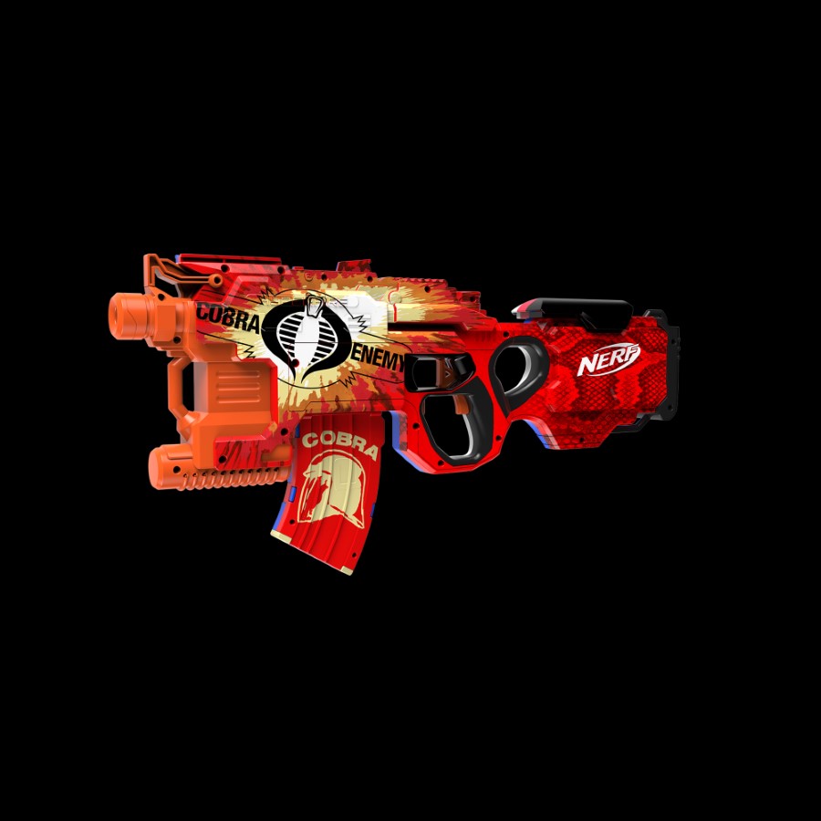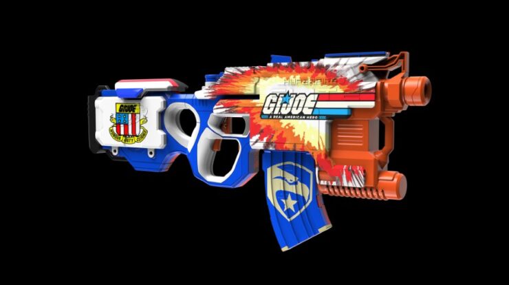 Revealed during the Joe presentation at Pulse Con, a special NERF LMTD GI-40 dart blaster will be released to celebrate the 40th anniversary of GI Joe: A Real American Hero. You can join the timeless Joe vs. Cobra battle with this NERF dart blaster thatlets you choose which side you want to join and switch sides whenever you desire. One side of this blaster features GI Joe details, and one side features Cobra details. Whichever side you’re on, you’re ready for action with this fully motorized blaster that rapid-fires 10 darts in a row. It includes a 10-dart removable clip and 10 NERF Elite foam darts. Power up the motor and pull the trigger to send a cascade of darts at your target. Requires 4x 1.5v D alkaline batteries (no tincluded).Eyewear recommended (not included).