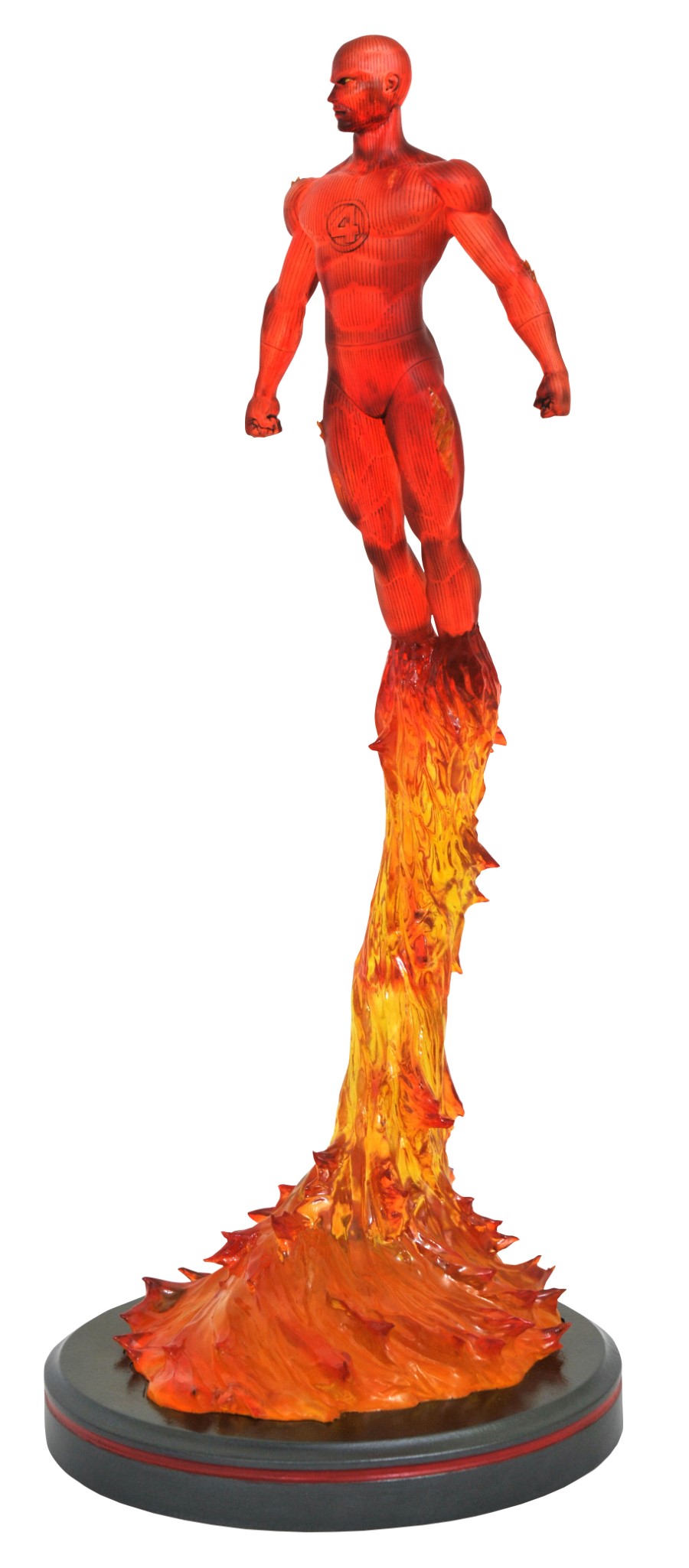 A Diamond Select Toys release! Flame on! Johnny Storm ignites excitement in this all-new Premier Collection statue! Sculpted by Clayburn Moore, the Torch rises up on a pillar of translucent flames, to a whopping height of over 14 inches tall! Featuring detailed sculpting and paint applications, this impressive statue is limited to only 3,000 pieces, and comes packaged in a full-color box with a numbered certificate of authenticity. Designed by Clayburn Moore and Caesar! SRP: $199.00