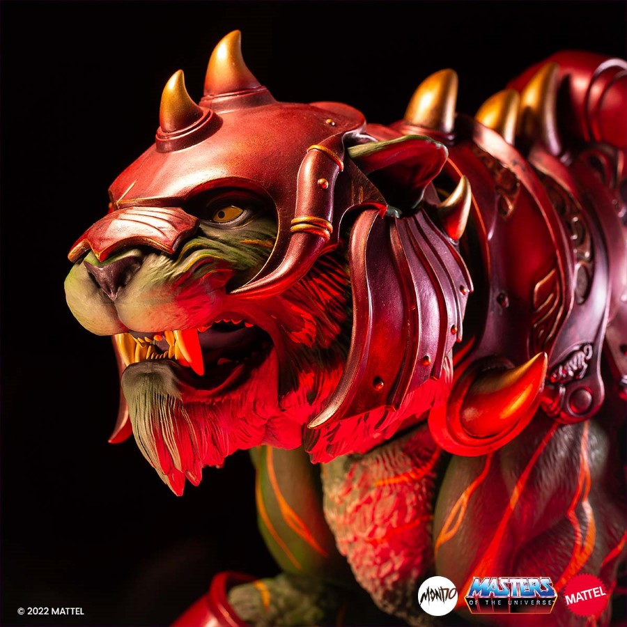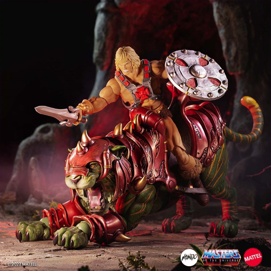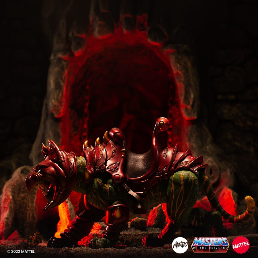 Slashing his way through Skeletor’s army is the ferocious Battle Cat! Mondo is thrilled to present the latest in our Masters of the Universe 1:6 Scale figure line with the world’s first ever 1:6 scale Battle Cat! This massive figure comes with an array of features and accessories, including: