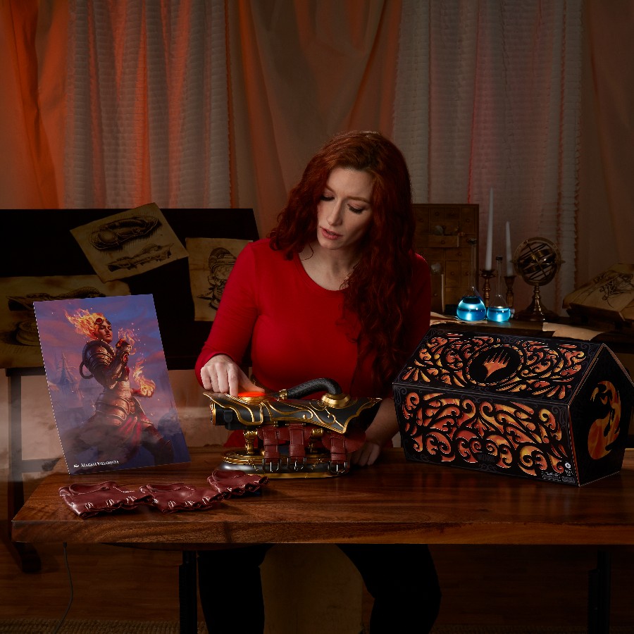 An inferno is just a gesture away. Chandra Nalaar: the Planeswalker with an incredible control over Fire. This premium Gauntlet brings the power of Fire to your hands. Modeled after the Artifact card from Magic: The Gathering, it features multiple electronic effects to simulate Chandra’s powers, including lights, sounds, and misting effects. Tap into the power of Fire with the Pyromancer’s Gauntlet from Hasbro, available for pre-order 10/27 at 8PM ET on HasbroPulse.com.