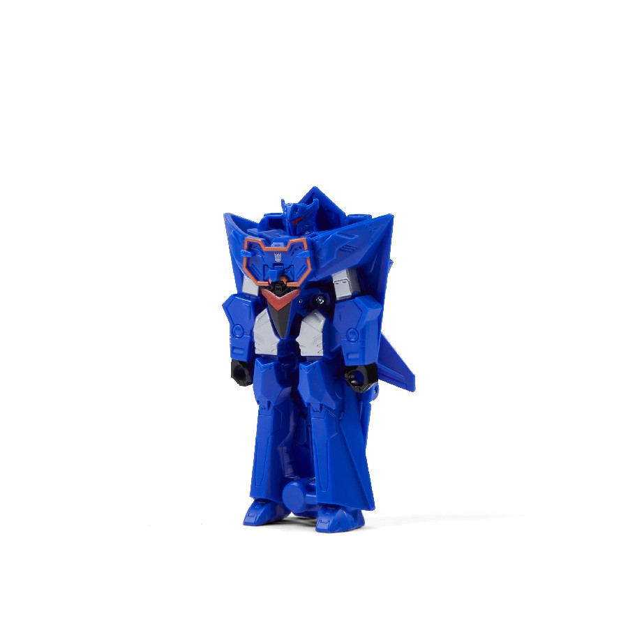 1-Step Flip Changer Soundwave stands at 4 inches tall and can convert from robot to jet mode in 1 easy step by flipping the bot in the air, while 1-Step Flip Changer Swindle stands at 4 inches tall and can convert from robot to off-road truck mode.