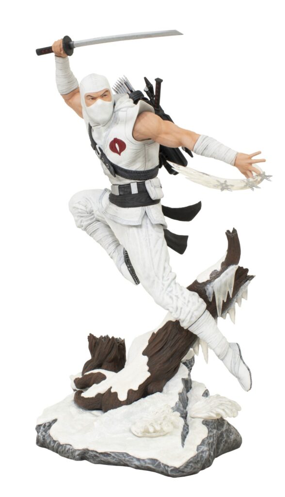 A Diamond Select Toys release! Enter the ninja! Cobra operative Storm Shadow has his sights on the GI Joe team, particularly his blood brother Snake Eyes! Leaping out of a wintry landscape, sword drawn and throwing stars flying, this approximately 11-inch sculpture of Tommy Arashikage is made of high-quality PVC and features detailed sculpting and paint applications. It comes packaged in a full-color window box. Designed by Joe Allard, sculpted by Jorge Santos Souza! SRP: $59.99