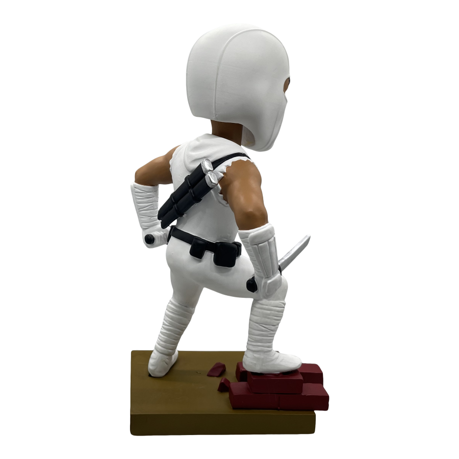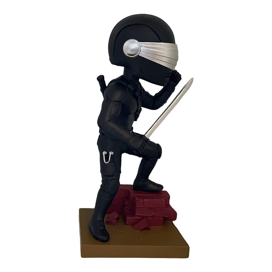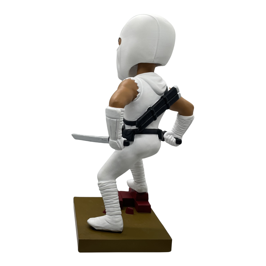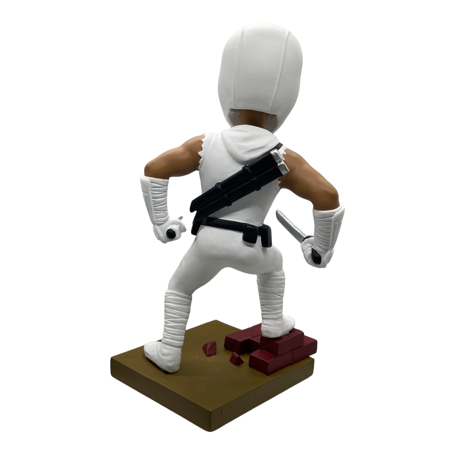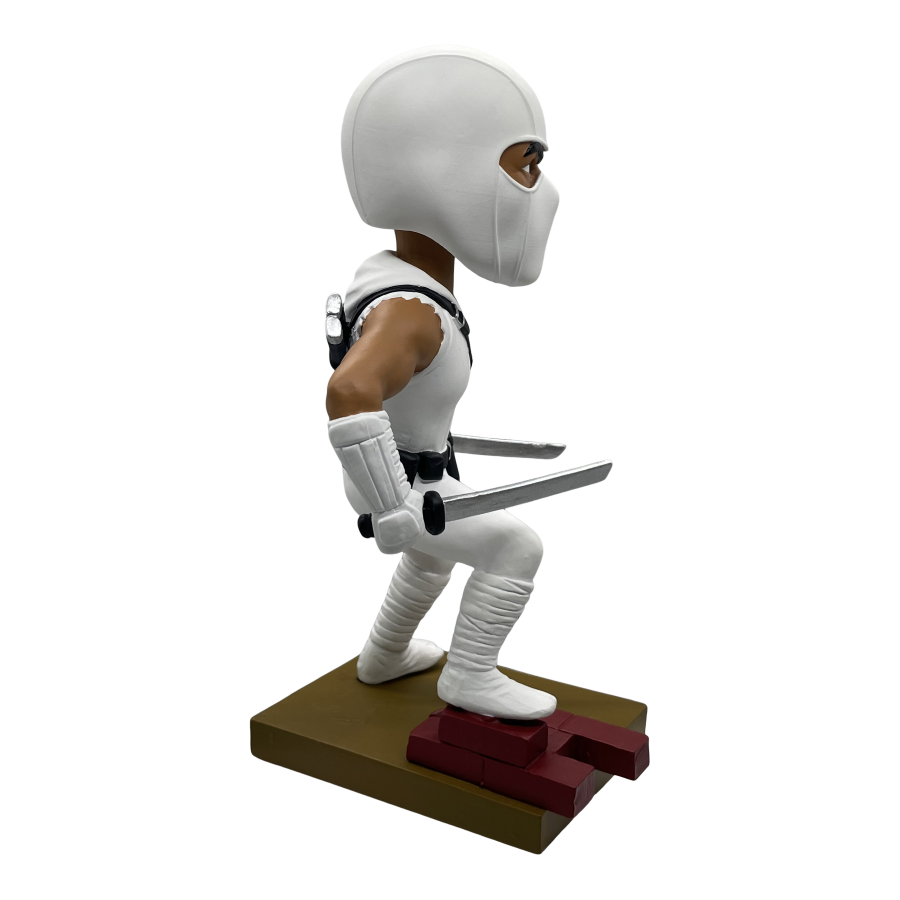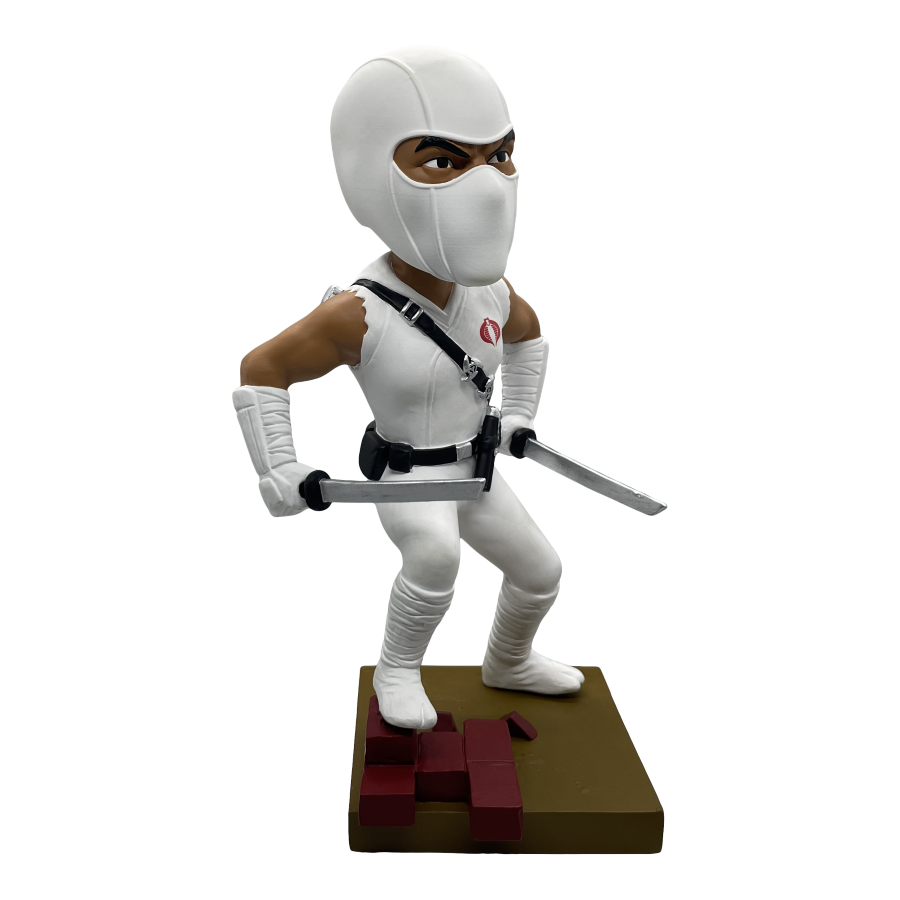 Armed with swords in each hand, Storm Shadow stands atop a diorama base ready to battle the Joes. Each limited edition bobblehead is made of polystone and hand painted. Connect and display alongside the Snake Eyes Bobblehead for a G.I. Joe themed diorama!