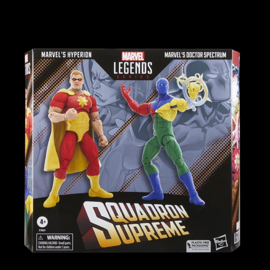 Today, Hasbro announced the latest additions to the Marvel Legends line – Hyperion and Doctor Spectrum from the Squadron Supreme. Inspired by the characters’ classic appearances in Marvel comics, these Hyperion and Doctor Spectrum figures features 7 accessories including Doctor Spectrum’s Power Prism gem and blast effects. This pair will be available for pre-order this Spring at Hasbro Pulse and additional fan channel retailers.