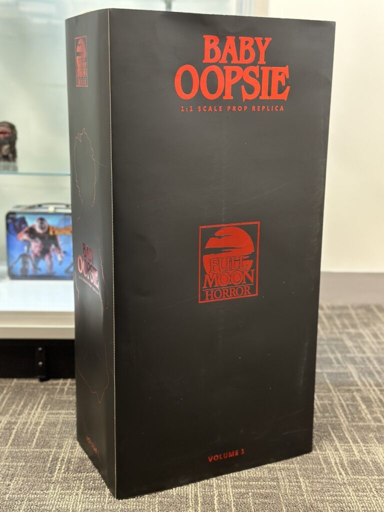 The Full Moon Horror Line will kick off in Q1 of this year with the launch of its flagship product, the 1:1 scale talking Baby Oopsie prop replica, a high-end collectible from FMF’s cult-following franchise, “Demonic Toys”. Retailing for $299.95, the Baby Oopsie replica is cast from the original prop molds used for the film and features electronic light-up eyes, and actual character voice recordings, along with real fabric clothing. The deluxe figure is 25 inches tall, posable, and comes in foil-stamped slip covers with a COA “birth certificate” signed by FMF CEO and Founder, Charles Band, and Baby Oopsie Director, William Butler. Only 900 units of the flagship replica will be produced and after selling out, will not be manufactured again. The limited edition replica will be available to purchase this March at www.FullMoonDirect.com and www.FullMoonHorror.com and is set to hit mass-market retailers later this year.