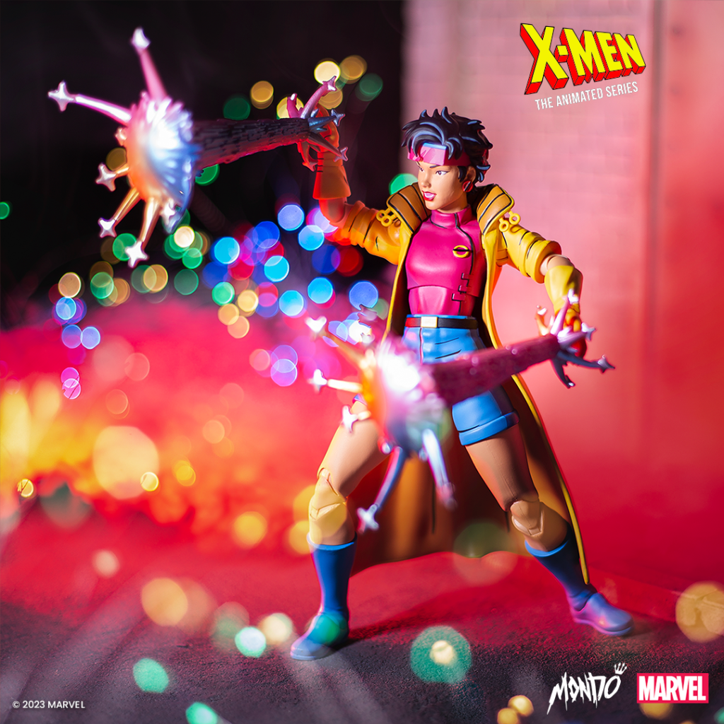 Mondo entered the world of MARVEL’S X-MEN: THE ANIMATED SERIES with JUBILEE, hand in explosive hand. Now, the newest member of the X-Men is also the third in the line of X-MEN: THE ANIMATED SERIES 1/6 scale figures. With her signature yellow trench and pink armor, Wolverine’s mall sidekick is ready to unlock her plasma powers. (Just don’t put her too close to your computer.) Alongside the Regular Edition, Mondo is releasing a Limited Edition JUBILEE who’s prepared for boarding with extra gear and portraits … including her look from “Jubilee’s Fairytale Theater.”