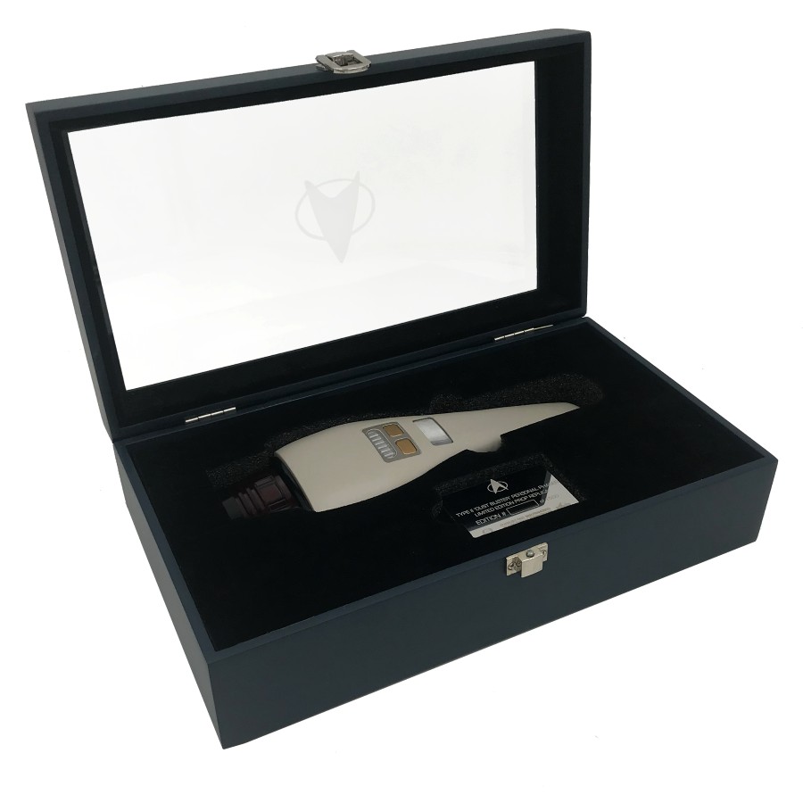 As seen in the iconic TV series Star Trek: The Next Generation, Type-2 Phasers were issued to Starfleet personnel during the early 2360’s and are larger and more powerful than Type-1 Phasers. Unofficially referred to by production as ‘The Dust Buster,’ they were intentionally designed to be sleek, free-flowing and less pistol-like than previous prop Starfleet weapon iterations.