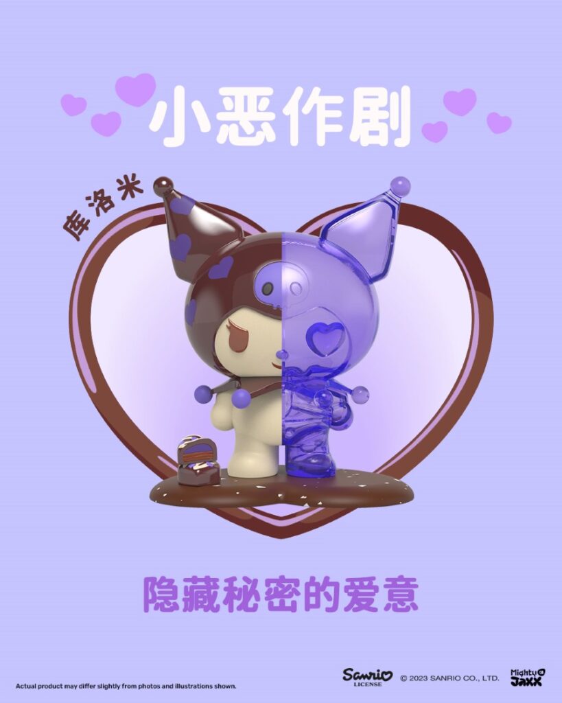 - Kuromi: Tough on the outside but soft and gooey on the inside, Kuromi makes for a great-tasting chocolate! Her flavor is blueberry—spot the blueish-purple heart shapes that cover her head.