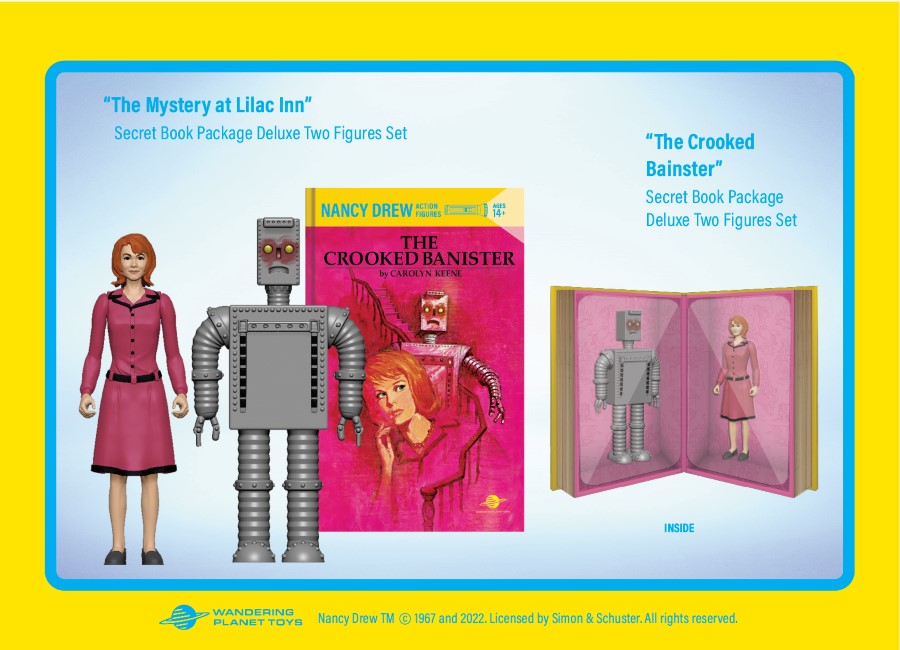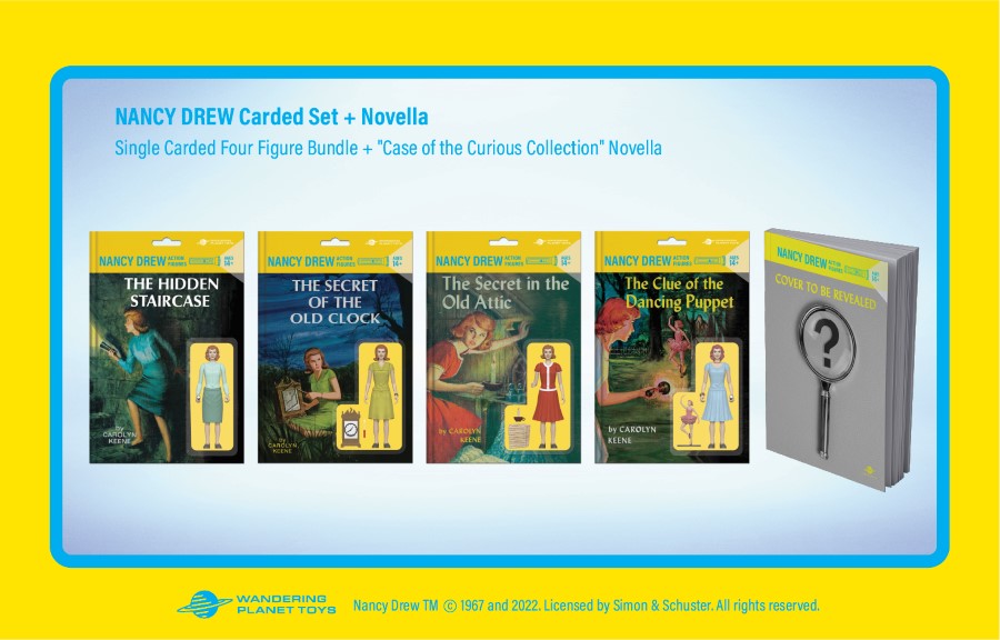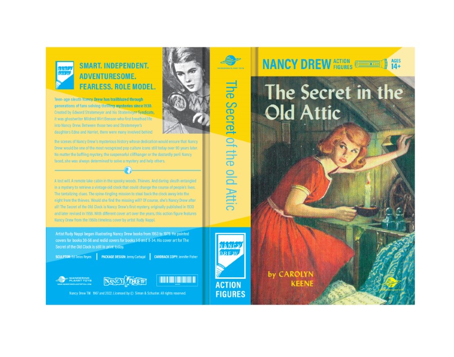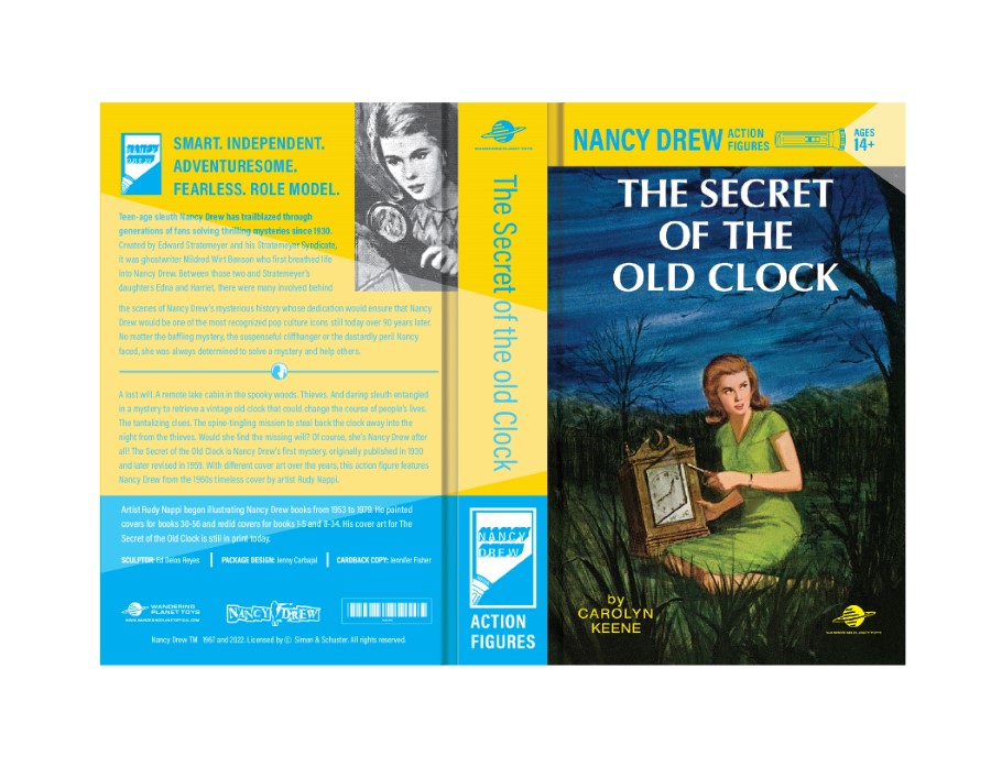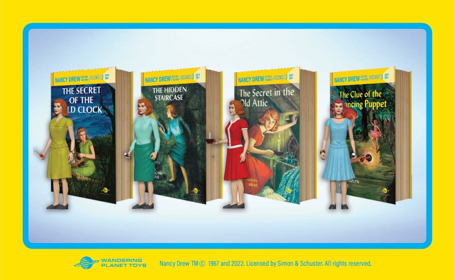 “Nancy Drew is bold, intelligent and Mystery’s IT Girl for the ages,” said Jenn Fisher, the President of the Nancy Drew Sleuths, who consulted on the stylish package design for the Wandering Planet Toys’ line of figures. “Bringing Nancy Drew to life as if she jumped off the covers of your favorite classic Nancy Drew books was a nostalgic adventure! It’s the dedication to detail and appreciation of generations of fans who have long awaited Nancy Drew action figures that will make these figures super collectible and highly sought after.”