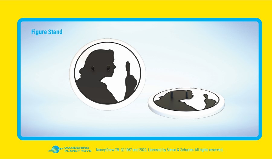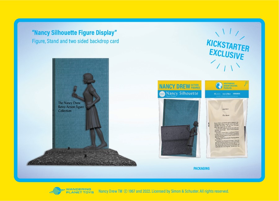 NANCY DREW Kickstarter Exclusive Silhouette Collectible Figure (and display-stand) includes a collectible action figure of the Nancy Drew “silhouette logo” and a display stand so you can recreate the timeless, iconic logo in action figure form.