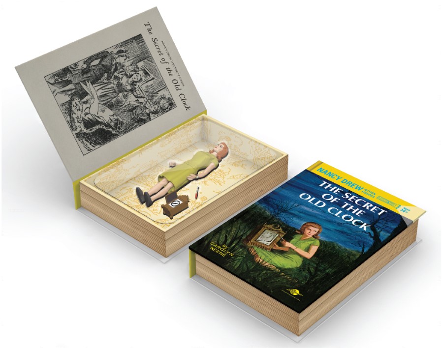 THE SECRET OF THE OLD CLOCK Secret Book-Box Collectible Figure is based on the very first book in the series and features the titian-haired detective in a green dress. It comes both with the old clock (with a clear front that opens) and with a screwdriver accessory, so Nancy can search for the lost will of Josiah Crowley.