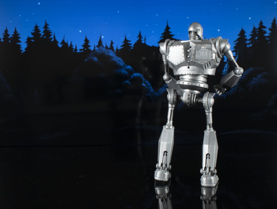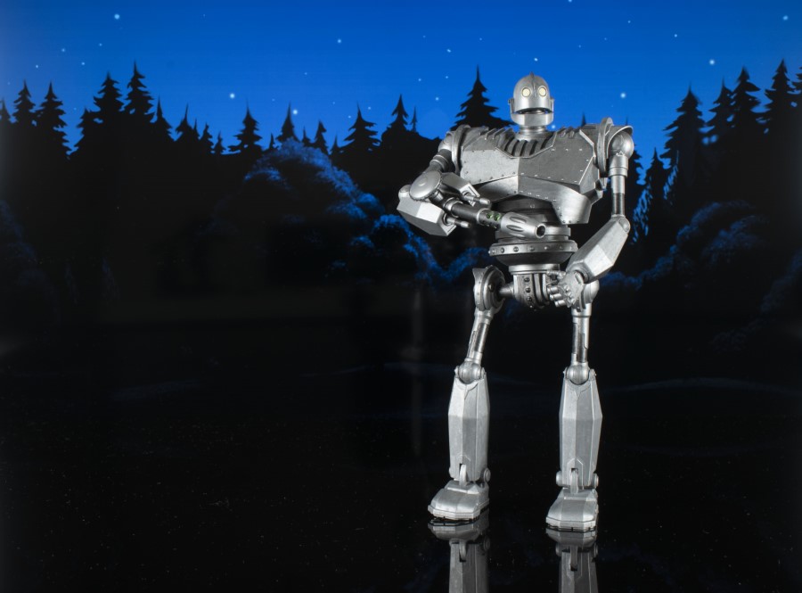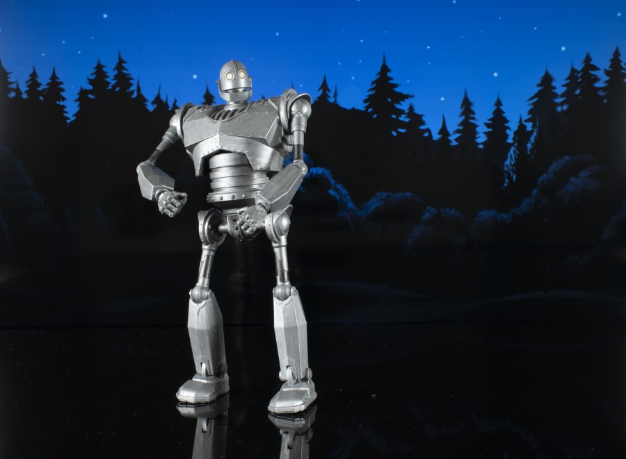 A Diamond Select Toys release! Be who you choose to be! The Iron Giant returns with a new look in this all-metallic release! Featuring light-up eyes and interchangeable hands, including a laser gun hand, this approximately 8-inch action figure features multiple points of articulation and runs on two button-cell batteries (included). It comes in Select-style action figure packaging with side-panel artwork for shelf reference. SRP: $29.99