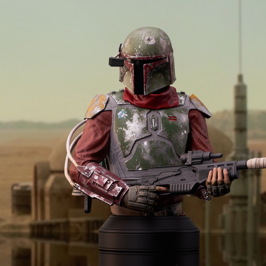 A Gentle Giant LTD release! The Marshal of Mos Pelgo has arrived! Wearing Boba Fett’s old armor, the law enforcer from Tatooine is ready to join the 1/6 scale mini-bust collection from Gentle Giant LTD! Measuring approximately 6 inches tall atop a pedestal base, this bust includes interchangeable helmeted and unhelmeted heads. Limited to only 3,000 pieces, it comes packaged in a full-color box with a numbered certificate of authenticity. SRP: $150.00