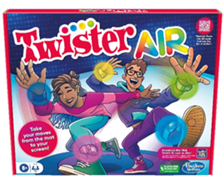 With Twister Air, the party moves onto the player’s smart device. Players reach, clap, swipe, and strike poses to music beats as they scramble to earn points by matching wrist and ankle bands to the colored spots on the screen. To get started, players download the free Twister Air app available on Android and iOS, and place their smartphone or tablet in the provided Twister Air device stand. Players are ready for action once they put the colorful, stretchy Twister Air bands on their wrists and ankles and follow the steps in the Twister Air App to calibrate their bands to their device’s camera. As soon as the music plays, it’s time to start moving and matching bands to colored spots that appear on the screen. With three different ways to play – Solo, VS or Teams mode – the replayability is infinite!