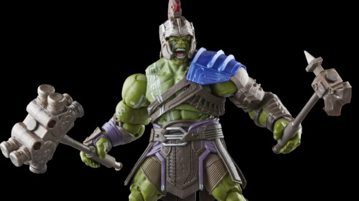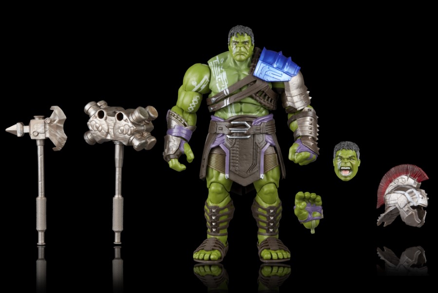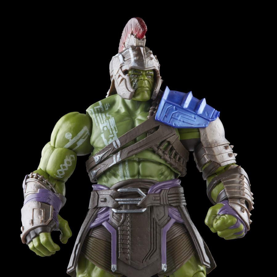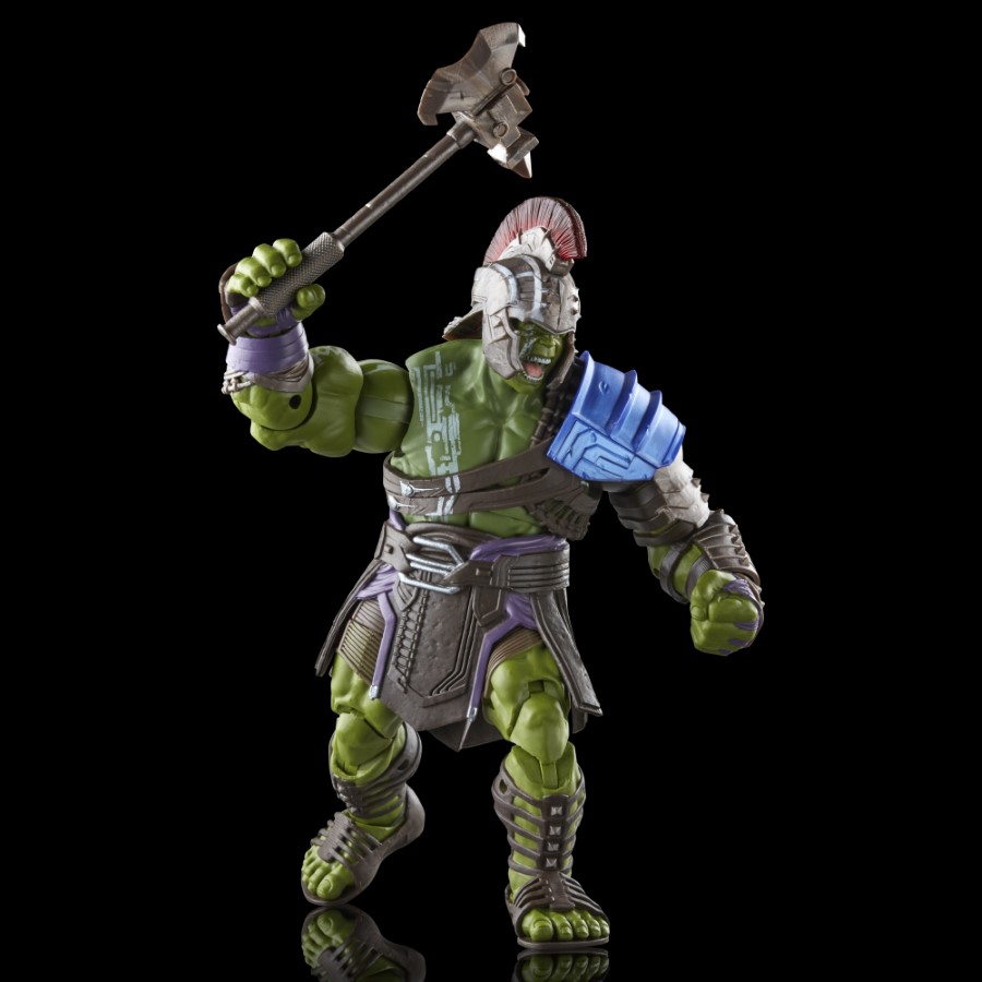 Hop into your Quinjet, Hasbro is taking us back to Sakaar with the newly updated Gladiator Hulk figure they revealed today. Based on Hulk’s appearance on Sakaar in Thor: Ragnarok, Gladiator Hulk was previously a build-a-figure from the movie wave. This 6-inch-scale figure stands tall at 8.375 inches without helmet. While wearing the removable helmet (which has a mohawk), it is 9.25 inches tall to the very top. The figure also comes with 5 entertainment-inspired accessories including an alternate head and gladiator helmet.