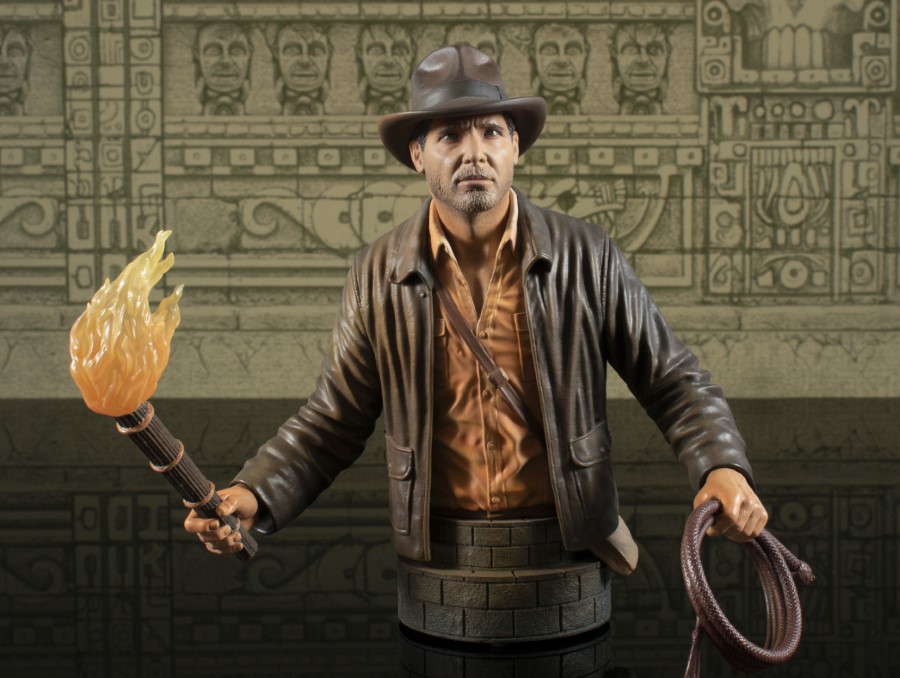A Gentle Giant LTD release! Adventure has a name, and it’s Indiana Jones! Now, the legendary archaeologist swings into the Gentle Giant LTD world with a realistic 1/6 Scale Mini-Bust! Measuring approximately 6 inches tall, torch and whip in hand, this San Diego-exclusive, sepia-tinted bust is limited to only 1,000 pieces and comes packaged in a full-color box with a numbered certificate of authenticity. SRP: $130.00