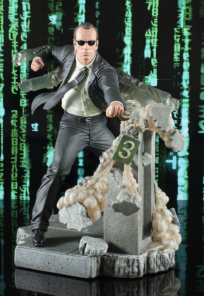 Beginning in 2024, DST will release a new line of Gallery Dioramas inspired by scenes from the original Matrix films. Each dynamic sculpture will be approximately 1/8 scale, measuring 9-12 inches tall, and each is made of high-quality PVC in a full-color window box. The first piece, depicting Agent Smith smashing through a pillar, will feature multiple translucent limbs to capture the speed of his punches, and is available for pre-order at DiamondSelectToys.com. Future pieces will include Neo, Trinity and Morpheus.