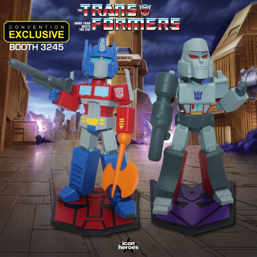 Icon Heroes’ next SDCC exclusive is a pair of bobbleheads who are rivals from the planet Cybertron – Optimus Prime and Megatron. You can bring the centuries old war between Autobots and Decepticons right to your desk with this pair of bobbles.